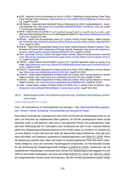 Menschenhandel Aufgrund der mangelnden Transparenz der Regierung bezüglich des Menschenhandels in Iran, insbesondere im Hinblick auf Frauen und Mädchen, werden keine Statistiken vorgelegt (NCRI 21.4.2021). Kinder von Afghanen ohne Papiere und anderen ethnischen Minderheiten haben Schwierigkeiten, legale Dokumente zu erhalten, was die Gefährdung dieser Bevölkerungsgrup pe für Menschenhandel erhöht. Nach Angaben des US-amerikanischen Außenministeriums reichen die Maßnahmen der iranischen Behörden nicht aus, um Menschenhandel zu unterbin den (USDOS 24.6.2024). Quellen ■ AA - Auswärtiges Amt [Deutschland] (15.7.2024): Bericht über die asyl- und abschiebungsrelevante Lage in der Islamischen Republik Iran (Stand: 03. April 2024), https://www.ecoi.net/en/file/local/211 2796/Auswärtiges_Amt,_Bericht_über_die_asyl-_und_abschiebungsrelevante_Lage_in_der_Islami schen_Republik_Iran,_15.07.2024.pdf, Zugriff 25.7.2024 ■ AA - Auswärtiges Amt [Deutschland] (28.1.2022): Bericht über die asyl- und abschiebungsrelevante Lage in Iran (Stand: 23.12.2021), https://www.ecoi.net/en/file/local/2068037/Auswärtiges_Amt,_Ber icht_über_die_asyl-_und_abschiebungsrelevante_Lage_in_Iran_(Stand_23.12.2021),_28.01.2022. pdf, Zugriff 24.3.2023 [Login erforderlich] ■ AIC - American Iranian Council (12.7.2022): MYTH vs. FACT: Education in Iran, http://www.us-iran. org/resources/2016/10/10/education, Zugriff 4.4.2023 ■ AnA - Anadolu Agency (15.6.2025): Iran shuts schools, Israel extends emergency amid escalating tensions, https://www.aa.com.tr/en/middle-east/iran-shuts-schools-israel-extends-emergency-ami d-escalating-tensions/3599534, Zugriff 26.6.2025 ■ BAMF - Bundesamt für Migration und Flüchtlinge [Deutschland] (1.2023): Länderreport 56 Iran: Rechtliche Situation der Frauen, https://milo.bamf.de/OTCS/cs.exe/fetch/2000/702450/683266/68 3300/683479/683484/6029645/24047468/-/Deutschland._Bundesamt_fr_Migration_und_Flchtlinge, _Iran_-_Rechtliche_Situation_der_Frauen,_01.01.2023._(Lnderreport___56).pdf, Zugriff 3.4.2023 ■ BAMF - Bundesamt für Migration und Flüchtlinge [Deutschland] (7.2020): Länderreport 28 Iran: Frauen Rechtliche Stellung und gesellschaftliche Teilhabe, https://coi.euaa.europa.eu/administratio n/germany/PLib/DE_BAMF_Laenderreport_28_Iran_July-2020.pdf, Zugriff 3.4.2023 ■ FH - Freedom House (2025): Freedom in the World 2025 - Iran, https://freedomhouse.org/country/i ran/freedom-world/2025, Zugriff 10.3.2025 ■ FR24 - France 24 (9.2.2025): Iranian schools and offices shut as cold snap bites, https://www.fran ce24.com/en/live-news/20250209-iranian-schools-and-offices-shut-as-cold-snap-bites , Zugriff 26.6.2025 ■ HRW - Human Rights Watch (13.1.2021): World Report 2021 - Iran, https://www.ecoi.net/de/doku ment/2043504.html, Zugriff 4.4.2023 ■ IRINTL - Iran International (24.12.2023): New Research Shows Rise In Child Marriages In Iran, https://www.iranintl.com/en/202312241642, Zugriff 4.6.2024 ■ IRJ - Iran Journal (18.5.2024): Morde aus archaischer Überzeugung, https://iranjournal.org/gesellsc haft/ehremorde-femizid-iran, Zugriff 4.6.2024 ■ IRWIRE - IranWire (3.6.2025): ‘Irreparable Damage’ to Iran’s Schools as Clerics Replace Qualified Teachers, https://iranwire.com/en/features/141732-irreparable-damage-to-irans-schools-as-clerics -replace-qualified-teachers/ , Zugriff 26.6.2025 ■ IRWIRE - IranWire (3.12.2024): Overcrowding, Teacher Shortages, and ‘Learning Poverty’: Educa tion Crisis in Iran, https://iranwire.com/en/features/136723-overcrowding-teacher-shortages-and-l earning-poverty-education-crisis-in-iran/ , Zugriff 26.6.2025 ■ K24 - Kurdistan 24 (22.9.2024): Iran’s education crisis as 790,000 children miss school year, https: //www.kurdistan24.net/en/story/396928/Iran's-education-crisis-as-790,000-children-miss-school-y ear, Zugriff 26.6.2025 ■ McGlinn - McGlinn, Senn (2001): Family Law in Iran, https://bahai-library.com/pdf/m/mcglinn_famil y_law_iran.pdf, Zugriff 5.4.2023 ■ MRAI - Menschenrechtsanwältin aus Iran (19.6.2023): Interview, via Videotelefonie 169