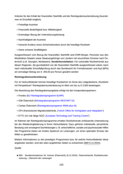 Kriterien für den Erhalt der finanziellen Starthilfe und der Reintegrationsunterstützung (Ausnah men im Einzelfall möglich): • Freiwillige Ausreise • Finanzielle Bedürftigkeit bzw. Mittellosigkeit • Erstmaliger Bezug der Unterstützungsleistung • Nachhaltigkeit der Ausreise • Keinerlei Evidenz eines Sicherheitsrisikos durch die freiwillige Rückkehr • Keine schwere Straffälligkeit Ausgeschlossen vom Bezug der finanziellen Starthilfe sind EWR-Bürger, Personen aus den Westbalkan-Staaten sowie Staatsangehörige von Ländern mit visumsfreier Einreise nach Ös terreich (z.B. Georgien, Moldawien). Sonderkonstellation: Für vulnerable Rückkehrende aus diesen Regionen, die grundsätzlich von der finanziellen Starthilfe ausgeschlossen wären, kann nach individueller Einzelfallprüfung durch das Bundesamt für Fremdenwesen und Asyl (BFA) ein einmaliger Betrag von € 250,00 pro Person gewährt werden Reintragrationsunterstützung Für 42 Herkunftsländer können freiwillige Rückkehrer im Sinne des Leitgedankens „ Rückkehr mit Perspektiven“ Reintegrationsunterstützung im Wert von bis zu € 3.500 beantragen. Die Abwicklung des Reintegrationsangebots erfolgt mit den Kooperationspartnern: • Frontex (EU Reintegrationsprogramm EURP) • IOM Österreich (Reintegrationsprogramm RESTART IV) • Caritas Österreich (Reintegratonsprogramm IRMA plus III) • OFII (französische Migrationsbehörde „French Office for Immigration and Integration“) • ETTC (im Irak tätige NGO „European Technology and Training Centre“) Im Rahmen der Reintegrationsprogramme erhalten Rückkehrende umfassende Unterstützung bei der Wiedereingliederung in ihrem Herkunftsland. Dazu gehören individuelle, persönliche Beratung und vorwiegend Sachleistungen z. B. wirtschaftliche, soziale und psychosoziale Hilfen. Die Programme bieten ein breites Spektrum an Leistungen, um einen optimalen Einsatz der Mittel zu gewährleisten. Weitere Informationen zu den jeweiligen Programmen bzw. für welche Herkunftsländer diese angeboten werden, sind den oben angeführten Seiten zu entnehmen (BMI 6.12.2024). Quelle ■ BMI - Bundesministerium für Inneres [Österreich] (6.12.2024): Österreichische Rückkehrunter stützung – Übersicht der Leistungen 220