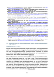 ■ IRINTL - Iran International (6.1.2025): 100,000 Iranians use Starlink to defy internet curbs, https: //www.iranintl.com/en/202501060034, Zugriff 15.1.2025 ■ IRINTL - Iran International (24.12.2024): Iran frees WhatsApp and Google Play, keeps tight grip on others, https://www.iranintl.com/en/202412247722, Zugriff 16.1.2025 ■ IRINTL - Iran International (29.9.2024): Iranian dailies clash over reaction to Nasrallah’s death, https://www.iranintl.com/en/202409298519, Zugriff 24.1.2025 ■ Landinfo - Referat für Länderinformationen der Einwanderungsbehörde [Norwegen] (9.11.2022): Iran: Internett og sosiale medier, https://www.ecoi.net/en/file/local/2083376/Temanotat-Iran-Interne tt-og-sosiale-medier-09112022.pdf , Zugriff 23.3.2023 ■ Manafi - Alireza Manafi (1.12.2022): هلاچهایس رد هدشمگ ؛ناریا تنرتنیا تیعضو اه [Inter netsituation im Iran; Verloren in schwarzen Löchern], https://alirezamanafi.com/1401/09/10/-----/ , Zugriff 22.1.2025 ■ MLDSC - Media Landscapes (2019b): Iran: Radio, https://medialandscapes.org/country/iran/media /radio, Zugriff 16.1.2025 ■ NatGeo - National Geographic (17.10.2022): „ Frau, Leben, Freiheit”: Die Proteste in Iran und ihre Geschichte, https://www.nationalgeographic.de/geschichte-und-kultur/2022/10/frau-leben-freiheit-p roteste-iran-geschichte-frauenrechte , Zugriff 14.3.2023 ■ RFE/RL - Radio Free Europe/Radio Liberty (19.6.2025): A Day Later, Watchdog Says Iranians Still Largely Cut Off From Internet By Authorities, https://www.rferl.org/a/netblocks-iranians-outage-inter net/33448841.html, Zugriff 27.6.2025 ■ RSF - Reporter ohne Grenzen (5.10.2022): How the Islamic Republic has enslaved Iran’s Internet, https://www.ecoi.net/de/dokument/2080602.html, Zugriff 23.3.2023 ■ Stimson - Stimson Center (9.9.2024): The VPN Epidemic in Iran: A Digital Plague Amid Global Isolation, https://www.stimson.org/2024/the-vpn-epidemic-in-iran-a-digital-plague-amid-global-iso lation/, Zugriff 15.1.2025 ■ u/TSMWorldChampions - Thefinalmovement, Reddit (24.9.2022): Iranian here responding to the signal post: clarifying the internet situation in Iran [nutzergenerierter Inhalt], https://www.reddit.com /r/privacy/comments/xmdm5p/iranian_here_responding_to_the_signal_post/?rdt=55911 , Zugriff 22.1.2025 ■ USDOS - United States Department of State [USA] (23.4.2024): 2023 Country Report on Human Rights Practices: Iran, https://www.ecoi.net/de/dokument/2107731.html, Zugriff 3.5.2024 12.2 Meinungsfreiheit und Zensur in traditionellen Medien, künstlerische und akademi sche Freiheit Letzte Änderung 2025-07-17 12:31 Reporter ohne Grenzen bezeichnet Iran als eines der repressivsten Länder weltweit in Hinblick auf die Pressefreiheit. Nach der umfangreichen Protestwelle ab September 2022 ist Iran eines der Länder mit den meisten eingesperrten Journalisten weltweit. 2024 belegte das Land mit einem Wert von 21,3 Rang 176 von 180 im Pressefreiheitsindex der Organisation [Anm.: je höher der Rang, desto geringer die Pressefreiheit] (RSF o.D.b). Einer von Reporter ohne Grenzen zusammengestellten Auflistung von juristischen Maßnah men gegen Journalistinnen rund um die „ Frau, Leben, Freiheit“-Proteste sind beispielsweise die folgenden Anklagepunkte zu entnehmen, die teils auch (schon) in Verurteilungen mündeten: Verbreitung von Propaganda gegen die Islamische Republik (Art. 500 IStGB); Versammlung und Verschwörung, um gegen die nationale Sicherheit zu handeln; Vergehen gegen die natio nale Sicherheit; Störung der öffentlichen Ordnung; Verbreitung von Lügen, Verleumdung und Drohungen; Störung der öffentlichen Meinung durch die Verbreitung von Lügen in den sozia len Medien sowie öffentliches Auftreten ohne ordnungsgemäße Verschleierung; Blasphemie; Zusammenarbeit mit einem ausländischen Staat (RSF 16.9.2024). 86