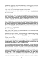 Quelle 33: ACLED 22.9.2023; vgl. ACLED 5.1.2024, ACLED 3.2024 Im Distrikt Badra wurden im Jahr 2023 vier Vorfälle registriert (monatlicher Durchschnitt von 0,33) (ACLED 5.1.2024). In den ersten beiden Monaten des Jahres 2024 wurden in Badra zwei Vorfälle verzeichnet (monatlicher Durchschnitt von 1) (ACLED 3.2024). Im Distrikt al-Aziziyah wurden in den Jahren 2022 und 2023 keine Vorfälle verzeichnet (ACLED 22.9.2023; vgl. ACLED 5.1.2024). Im Distrikt al-Hayy wurden von Juli bis Dezember 2022 acht Vorfälle (monatlicher Durchschnitt von 1,33) registriert, darunter fünf Fälle von Gewalt gegen Zivilisten (monatlicher Durchschnitt von 0,83), die alle zivile Todesopfer forderten (ACLED 22.9.2023). Im Jahr 2023 wurden vier Vorfälle registriert (monatlicher Durchschnitt von 0,33), darunter zwei Fälle von Gewalt ge gen Zivilisten (monatlicher Durchschnitt von 0,17), beide mit zivilen Todesopfern. Die übrigen Zwischenfälle werden nicht identifizierten bewaffneten Gruppen und Sicherheitskräften zuge schrieben (ACLED 5.1.2024). Im Distrikt al-Kut wurden von Juli bis Dezember 2022 34 Vorfälle (monatlicher Durchschnitt von 5,67), registriert, darunter fünf Fälle von Gewalt gegen Zivilisten (monatlicher Durchschnitt von 0,83), von denen es in vier Fällen zivile Tote gab. Darüber hinaus wurden 26 friedliche und zwei gewalttätige Demonstrationen verzeichnet (ACLED 22.9.2023). Im Jahr 2023 wurden 31 Vorfälle registriert (monatlicher Durchschnitt von 2,58), darunter zwei Fälle von Gewalt gegen Zivilisten (monatlicher Durchschnitt von 0,17), ohne Opfer. Darüber hinaus wurden 21 Demonstratio nen und Proteste verzeichnet, wovon 17 friedlich abliefen, eine mit Intervention vonstattenging und drei gewalttätig waren. Die übrigen Zwischenfälle werden nicht identifizierten bewaffneten Gruppen, Stammesmilizen und Sicherheitskräften zugeschrieben (ACLED 5.1.2024). Im Jahr 2024 wurden bis Februar in al-Kut neun Vorfälle verzeichnet (monatlicher Durchschnitt von 4,5), darunter zwei Fälle von Gewalt gegen Zivilisten (monatlicher Durchschnitt von 1), die beide 113