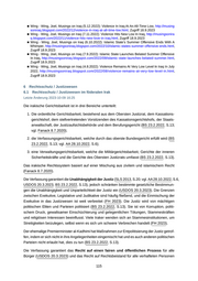■ Wing - Wing, Joel, Musings on Iraq (5.12.2022): Violence In Iraq At An All-Time Low, http://musing soniraq.blogspot.com/2022/12/violence-in-iraq-at-all-time-low.html , Zugriff 18.9.2023 ■ Wing - Wing, Joel, Musings on Iraq (7.11.2022): Violence Hits New Low In Iraq, http://musingsonira q.blogspot.com/2022/11/violence-hits-new-love-in-iraq.html , Zugriff 18.9.2023 ■ Wing - Wing, Joel, Musings on Iraq (6.10.2022): Islamic State’s Summer Offensive Ends With A Whimper, http://musingsoniraq.blogspot.com/2022/10/islamic-states-summer-offensive-ends.html , Zugriff 18.9.2023 ■ Wing - Wing, Joel, Musings on Iraq (7.9.2022): Islamic State Launches Belated Summer Offensive In Iraq, http://musingsoniraq.blogspot.com/2022/09/islamic-state-launches-belated-summer.html , Zugriff 18.9.2023 ■ Wing - Wing, Joel, Musings on Iraq (4.8.2022): Violence Remains At Very Low Level In Iraq In July 2022, http://musingsoniraq.blogspot.com/2022/08/violence-remains-at-very-low-level-in.html , Zugriff 18.9.2023 6 Rechtsschutz / Justizwesen 6.1 Rechtsschutz / Justizwesen im föderalen Irak Letzte Änderung 2023-10-09 16:25 Die irakische Gerichtsbarkeit ist in drei Bereiche unterteilt: 1. Die ordentliche Gerichtsbarkeit, bestehend aus dem Obersten Justizrat, dem Kassations gerichtshof, dem stellvertretenden Vorsitzenden des Kassationsgerichtshofs, der Staats anwaltschaft, der Justizaufsichtsbehörde und dem Berufungsgericht (BS 23.2.2022, S.13; vgl. Fanack 8.7.2020); 2. die Verfassungsgerichtsbarkeit, welche durch das oberste Bundesgericht erfüllt wird (BS 23.2.2022, S.13; vgl. AA 28.10.2022, S.6); 3. eine Verwaltungsgerichtsbarkeit, welche die Militärgerichtsbarkeit, Gerichte der inneren Sicherheitskräfte und die Gerichte des Obersten Justizrats umfasst (BS 23.2.2022, S.13). Das irakische Rechtssystem basiert auf einer Mischung aus zivilem und islamischem Recht (Fanack 8.7.2020). Die Verfassung garantiert die Unabhängigkeit der Justiz (SLS 2013, S.20; vgl. AA 28.10.2022, S.6, USDOS 20.3.2023, BS 23.2.2022, S.13), jedoch schränken bestimmte gesetzliche Bestimmun gen die Unabhängigkeit und Unparteilichkeit der Justiz ein (USDOS 20.3.2023). Die Grenzen zwischen Exekutive, Legislative und Judikative sind häufig fließend, und die Einmischung der Exekutive in das Justizwesen ist weit verbreitet (FH 2023). Die Justiz wird von mächtigen politischen Eliten und Parteien politisiert (BS 23.2.2022, S.13). Sie ist von Korruption, politi schem Druck, gewaltsamer Einschüchterung und gelegentlichen Tötungen, Stammeskräften und religiösen Interessen beeinflusst. Viele Iraker wenden sich an Stammesinstitutionen, um Streitigkeiten beizulegen, selbst wenn es sich um schwere Verbrechen handelt (FH 2023). Der ehemalige Premierminister al-Kadhimi hat Maßnahmen zur Entpolitisierung der Justiz getrof fen, indem er sich nicht in ihre Angelegenheiten eingemischt hat und es auch anderen politischen Parteien nicht erlaubt hat, dies zu tun (BS 23.2.2022, S.13). Die Verfassung garantiert das Recht auf einen fairen und öffentlichen Prozess für alle Bürger (USDOS 20.3.2023) und das Recht auf Rechtsbeistand für alle verhafteten Personen 115