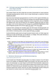 Antikorruptions-, Strafverfolgungs- und Justizbeamte sowie Mitglieder der Zivilgesellschaft und der Medien werden wegen ihrer Bemühungen zur Bekämpfung korrupter Praktiken bedroht und eingeschüchtert(USDOS 20.3.2023; vgl. FH 2023, DFAT 16.1.2023, S.10). Sie sind sowohl im föderalen Irak, als auch in der Kurdistan Region Irak (KRI) mit Verhaftungen, Verleumdungs klagen und Gewalt konfrontiert (FH 2023). Korruption war einer der Auslöser für die sogenann ten Tishreen-Proteste, die 2019 ausgebrochen sind (FH 2023; vgl. DFAT 16.1.2023, S.10). Die KRI leidet unter ähnlichen Korruptionsproblemen (FH 24.2.2022). Berichten zufolge sind sie aber geringer als in anderen Teilen des Irak (DFAT 16.1.2023, S.10). Auf dem Corruption Perceptions Index 2022 von Transparency International wird der Irak mit 23 (von 100) Punkten bewertet (0=highly corrupt, 100=very clean) und nimmt Rang 157 von 180 Staaten ein (TI 2023). Quellen ■ DFAT - Department of Foreign Affairs and Trade [Australien] (16.1.2023): DFAT Country Information Report Iraq, https://www.ecoi.net/en/file/local/2085737/country-information-report-iraq.pdf , Zugriff 2.2.2023 ■ FH - Freedom House (2023): Freedom in the World 2023 - Iraq, https://www.ecoi.net/de/dokument /2090187.html, Zugriff 7.7.2023 ■ FH - Freedom House (24.2.2022): Freedom in the World 2022 - Iraq, https://www.ecoi.net/de/doku ment/2068634.html, Zugriff 11.7.2023 ■ TI - Transparency International (2023): Corruption perception Index, Iraq 2022, https://www.transp arency.org/en/cpi/2022/index/irq, Zugriff 11.7.2023 ■ USDOS - United States Department of State [USA] (20.3.2023): 2022 Country Report on Human Rights Practices: Iraq, https://www.ecoi.net/de/dokument/2089064.html, Zugriff 11.7.2023 ■ USDOS - United States Department of State [USA] (12.4.2022): 2021 Country Report on Human Rights Practices: Iraq, https://www.ecoi.net/de/dokument/2071125.html, Zugriff 24.8.2023 ■ USDOS - United States Department of State [USA] (30.3.2021): 2020 Country Report on Human Rights Practices: Iraq, https://www.ecoi.net/de/dokument/2048100.html, Zugriff 11.7.2023 10 Nichtregierungsorganisationen (NGOs) und Menschenrechtsaktivisten Letzte Änderung 2023-10-06 21:53 Seit 2010 gibt es ein Gesetz zu NGOs, das die Beschränkungen der Auslandsfinanzierung von Nichtregierungsorganisationen (NGOs) lockert, die Ablehnung von Registrierungsanträ gen durch staatliche Stellen einschränkt, strafrechtliche Sanktionen beseitigt, unbegründete Überprüfungen und Inspektionen untersagt sowie gerichtliche Kontrollen für die Suspendierung von NGOs schafft (ICNL 17.5.2023). NGOs müssen sich registrieren (FH 2023; vgl. USDOS 12.4.2022, DFAT 16.1.2023, S.28). Im föderalen Irak registrierte NGOs müssen sich auch in der Kurdistan Region Irak (KRI) registrieren lassen, um dort tätig zu werden und umgekehrt (USDOS 20.3.2023). Mit Stand September 2020 waren laut der irakischen Bundesdirektion für Nichtregierungsorga nisationen 4.600 NGOs registriert, darunter 168 Niederlassungen ausländischer Organisationen (USDOS 30.3.2021). Über 440 registrierte NGOs sind im Bereich der Menschenrechte engagiert. NGOs, die sich für den Schutz der Menschenrechte einsetzen, unterliegen in ihrer Registrierung keinen Einschränkungen. Die Sicherheitslage und bürokratischen Hürden erschweren jedoch 139