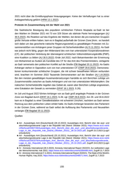2021 nicht über die Ermittlungsphase hinausgegangen. Keine der Verhaftungen hat zu einer Anklageerhebung geführt (HRW 13.1.2022). Proteste im Zusammenhang mit der Wahl von 2021 Die Sadristische Bewegung des populären schiitischen Führers Muqtada as-Sadr ist bei den Wahlen im Oktober 2021 mit 73 von 329 Sitzen als stärkste Partei hervorgegangen (AJ 30.5.2022). Als Reaktion auf das Ergebnis der Wahlen, bei denen die pro-iranischen Gruppen große Verluste erlitten haben, kam es in Bagdad,außerhalb der Grünen Zone [Anm.: es handelt sich dabei um das gesicherte irakische Regierungsviertel] zu gewalttätigen Protesten mit Zu sammenstößen von Anhängern jener Gruppen mit Sicherheitskräften (AJ 5.11.2021). As-Sadr war jedoch nicht fähig, gegen den Widerstand des vom Iran unterstützten Kooperationsrahmen (CF), der politischen Vertretung der überwiegend schiitischen Volksmobilisierungskräfte (PMF), eine Koalition zu bilden (AJ 30.5.2022). Ende Juli 2022, nach Bekanntwerden der Ernennung von Mohammed as-Sudani als Kandidat des CF für das Amt des Premierministers, verlagerte as-Sadr seinerseits den politischen Konflikt auf die Straße (ÖB Bagdad 20.11.2022). As-Sadrs Anhänger stehen in Opposition zum von Iran unterstützten CF (OWP 29.8.2022). Demonstra tionen konkurrierender schiitischer Gruppen, die mit schwer bewaffneten Milizen verbunden sind, brachten im Sommer 2022 Tausende Demonstranten auf die Straßen (AJ 1.8.2022). Bei den meisten gewalttätigen Auseinandersetzungen handelte es sich Berichten zufolge um Zusammenstöße zwischen as-Sadrs Anhängern und von Iran unterstützten Milizkämpfern. Die irakischen Sicherheitskräfte riegelten das Gebiet ab, waren aber Berichten zufolge angewiesen, eine Eskalation der Gewalt zu vermeiden (DFAT 16.1.2023, S.26). Im Juli und August 2022 führten Anhänger von as-Sadr groß angelegte Proteste in der Grünen Zone von Bagdad durch (DFAT 16.1.2023, S.26; vgl. OWP 29.8.2022). Am 29. und 30.8.2022 kam es in Bagdad zu einer Gewalteskalation mit schweren Unruhen, nachdem as-Sadr seinen Rückzug aus dem politischen Leben erklärt hatte. As-Sadrs Anhänger besetzten das Parlament in der Grünen Zone, während as-Sadr selbst die Auflösung des Parlaments und Neuwahlen verlangte (ÖB Bagdad 20.11.2022). Quellen ■ AA - Auswärtiges Amt [Deutschland] (28.10.2022): Auswärtiges Amt, Bericht über die asyl- und abschiebungsrelevante Lage in der Republik Irak (Stand: Oktober 2022), https://www.ecoi.net/e n/file/local/2082728/Auswärtiges_Amt,_Bericht_über_die_asyl-_und_abschiebungsrelevante_ Lage_in_der_Republik_Irak_(Stand_Oktober_2022),_28.10.2022.pdf , Zugriff 23.3.2023 [Login erforderlich] ■ AA - Auswärtiges Amt [Deutschland] (25.10.2021): Auswärtiges Amt, Bericht über die asyl- und abschiebungsrelevante Lage in der Republik Irak (Stand: Oktober 2021), https://www.ecoi.net/e n/file/local/2063378/Auswärtiges_Amt,_Bericht_über_die_asyl-_und_abschiebungsrelevante_ Lage_in_der_Republik_Irak_(Stand_Oktober_2021),_25.10.2021.pdf , Zugriff 24.8.2023 [Login erforderlich] ■ AI - Amnesty International (28.3.2023): Amnesty International Report 2022/23; Zur weltweiten Lage der Menschenrechte; Irak 2022, https://www.ecoi.net/en/document/2094485.html, Zugriff 21.7.2023 ■ AI - Amnesty International (7.4.2021): Amnesty International Report 2020/21; The State of the World’s Human Rights; Iraq 2020, https://www.ecoi.net/en/document/2048571.html, Zugriff 11.7.2023 155