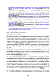 n/file/local/2082728/Auswärtiges_Amt,_Bericht_über_die_asyl-_und_abschiebungsrelevante_ Lage_in_der_Republik_Irak_(Stand_Oktober_2022),_28.10.2022.pdf , Zugriff 23.3.2023 [Login erforderlich] ■ AI - Amnesty International (28.3.2023): Amnesty International Report 2022/23; Zur weltweiten Lage der Menschenrechte; Irak 2022, https://www.ecoi.net/en/document/2094485.html, Zugriff 21.7.2023 ■ AI - Amnesty International (15.6.2021): Kurdistan region of Iraq: Authorities must end protests-related repression [MDE 14/4233/2021], https://www.ecoi.net/en/file/local/2053869/MDE1442332021ENGL ISH.pdf, Zugriff 11.5.2023 ■ DFAT - Department of Foreign Affairs and Trade [Australien] (16.1.2023): DFAT Country Information Report Iraq, https://www.ecoi.net/en/file/local/2085737/country-information-report-iraq.pdf , Zugriff 2.2.2023 ■ FH - Freedom House (2023): Freedom in the World 2023 - Iraq, https://www.ecoi.net/de/dokument /2090187.html, Zugriff 7.7.2023 ■ FH - Freedom House (3.3.2021a): Freedom in the World 2021 – Iraq, https://www.ecoi.net/en/docu ment/2046520.html, Zugriff 11.7.2023 ■ HRW - Human Rights Watch (13.1.2021): World Report 2021 - Iraq, https://www.ecoi.net/de/doku ment/2043505.html, Zugriff 16.8.2023 ■ MEI - Middle East Institute (24.2.2021): Beyond the elite: Taking protest and public opinion seriously in the Kurdistan Region, https://www.mei.edu/publications/beyond-elite-taking-protest-and-public-o pinion-seriously-kurdistan-region , Zugriff 11.5.2023 14.2 Vereinigungsfreiheit / Opposition Letzte Änderung 2023-10-09 08:25 Die Verfassung garantiert, mit einigen Ausnahmen, das Recht auf Gründung von und Mitglied schaft in Vereinen und politischen Parteien (USDOS 20.3.2023; vgl. FH 2023). Die Regierung respektiert diese Rechte im Allgemeinen. Ausnahmen betreffen das gesetzliche Verbot von Gruppen, die Unterstützung für zionistische Prinzipien bekunden (USDOS 20.3.2023), oder für die Ba‘ath-Partei (USDOS 20.3.2023; vgl. FH 2023). Darüber hinaus sind alle Gruppierungen verboten, die Rassismus, Terrorismus, Sektierertum, konfessionelle Säuberungen und andere Ideen unterstützen, die der Demokratie oder einer friedlichen Machtübergabe entgegenstehen (FH 2023). Bei den jüngsten Parlamentswahlen vom 10.10.2021 hatten sich 267 Parteien, von denen 126 bei den Wahlen antraten(AA 28.10.2022, S.6), und 21 Wahlbündnisse registriert (AA 28.10.2022, S.6; vgl. ÖB Bagdad 20.11.2022, S.1). Darüber hinaus stellten sich 789 Kandidaten als Unab hängige der Wahl (ÖB Bagdad 20.11.2022, S.1). Das politische System des Irak ist nach wie vor durch die Einmischung ausländischer Mächte, insbesondere von Iran, gezeichnet (FH 2023). Es liegen keine Erkenntnisse über die geziel te Unterdrückung der außerparlamentarischen politischen Opposition durch staatliche Organe vor. Politische Aktivisten berichten jedoch von Einschüchterungen und Gewalt durch staatliche, nicht-staatliche oder paramilitärische Akteure, die abschrecken sollen, neue politische Bewe gungen zu etablieren, und damit die freie Meinungsäußerung teils massiv einschränken (AA 28.10.2022, S.8). Politische Gegner des regierenden, sog. Koordinationsrahmens (CF) werden eingeschüchtert, wobei es zuweilen zu Entführungen und Morden kommt (FH 2023). Die Arbeitsgesetze garantieren Arbeitnehmern das Recht auf die Bildung von Gewerkschaf ten, von Kollektivverhandlungen und auf das Abhalten von Streiks, schützen sie aber nicht 158