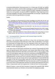Lage_in_der_Republik_Irak_(Stand_Oktober_2022),_28.10.2022.pdf , Zugriff 23.3.2023 [Login erforderlich] ■ AA - Auswärtiges Amt [Deutschland] (22.1.2021): Auswärtiges Amt, Bericht über die asyl- und ab schiebungsrelevante Lage in der Republik Irak (Stand: Januar 2021), https://www.ecoi.net/en/file /local/2057645/Deutschland___Auswärtiges_Amt,_Bericht_über_die_asyl-_und_abschiebungs relevante_Lage_in_der_Republik_Irak_(Stand_Januar_2021),_22.01.2021.pdf , Zugriff 21.7.2023 [Login erforderlich] ■ CPT - Community Peacemaker Teams (3.8.2021): Trials of the 9 Badinan Activists, https://cptik.org/ reports-1/2021/8/2/trials-of-the-9-badinan-activists , Zugriff 7.6.2022 ■ DFAT - Department of Foreign Affairs and Trade [Australien] (16.1.2023): DFAT Country Information Report Iraq, https://www.ecoi.net/en/file/local/2085737/country-information-report-iraq.pdf , Zugriff 2.2.2023 ■ FH - Freedom House (2023): Freedom in the World 2023 - Iraq, https://www.ecoi.net/de/dokument /2090187.html, Zugriff 7.7.2023 ■ FH - Freedom House (24.2.2022): Freedom in the World 2022 - Iraq, https://www.ecoi.net/de/doku ment/2068634.html, Zugriff 11.7.2023 ■ FH - Freedom House (3.3.2021a): Freedom in the World 2021 – Iraq, https://www.ecoi.net/en/docu ment/2046520.html, Zugriff 11.7.2023 ■ HRW - Human Rights Watch (12.1.2023): World Report 2023 - Iraq, https://www.ecoi.net/en/docu ment/2085461.html, Zugriff 15.2.2023 ■ HRW - Human Rights Watch (13.1.2022): World Report 2022 - Iraq, https://www.ecoi.net/en/docu ment/2066472.html, Zugriff 13.7.2023 ■ MEI - Middle East Institute (24.2.2021): Beyond the elite: Taking protest and public opinion seriously in the Kurdistan Region, https://www.mei.edu/publications/beyond-elite-taking-protest-and-public-o pinion-seriously-kurdistan-region , Zugriff 11.5.2023 ■ RSF - Reporter ohne Grenzen (2023): Iraq, https://rsf.org/en/country/iraq, Zugriff 18.8.2023 ■ USDOS - United States Department of State [USA] (20.3.2023): 2022 Country Report on Human Rights Practices: Iraq, https://www.ecoi.net/de/dokument/2089064.html, Zugriff 11.7.2023 ■ USDOS - United States Department of State [USA] (12.4.2022): 2021 Country Report on Human Rights Practices: Iraq, https://www.ecoi.net/de/dokument/2071125.html, Zugriff 24.8.2023 ■ USDOS - United States Department of State [USA] (30.3.2021): 2020 Country Report on Human Rights Practices: Iraq, https://www.ecoi.net/de/dokument/2048100.html, Zugriff 11.7.2023 14 Versammlungs- und Vereinigungsfreiheit, Opposition 14.1 Versammlungsfreiheit Letzte Änderung 2023-10-09 16:25 Die Verfassung sieht das Recht auf Versammlung und friedliche Demonstration nach den Re geln des Gesetzes vor (USDOS 20.3.2023; vgl.FH 2023, AA 28.10.2022, S.8), allerdings nur unter der Vorgabe, dass nicht gegen die öffentliche Ordnung und Moral verstoßen wird. Ein Gesetzesentwurf von 2014 für eine nähere Ausgestaltung der Regelung wurde bislang nicht verabschiedet (AA 28.10.2022, S.8). Die gesetzlichen Regelungen schreiben vor, dass die Veranstalter sieben Tage vor einer De monstration um Genehmigung ansuchen und detaillierte Informationen über Veranstalter, Grund des Protests und Teilnehmer einreichen müssen. Die Vorschriften verbieten jegliche Slogans, Schilder, Druckschriften oder Zeichnungen, die Konfessionalismus, Rassismus oder die Se gregation der Bürger zum Inhalt haben. Die Vorschriften verbieten auch alles, was gegen die Verfassung oder gegen das Gesetz verstößt; alles, was zu Gewalt, Hass oder Mord ermutigt; und alles, was eine Beleidigung des Islam, der Ehre, der Moral, der Religion, heiliger Gruppen oder irakischer Einrichtungen im Allgemeinen darstellt (USDOS 20.3.2023; vgl. DFAT 16.1.2023, S.26). Zivilgesellschaftlichen Organisationen zufolge werden die meisten Anträge auf Erlaubnis 152