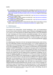 Quellen ■ AA - Auswärtiges Amt [Deutschland] (28.10.2022): Auswärtiges Amt, Bericht über die asyl- und abschiebungsrelevante Lage in der Republik Irak (Stand: Oktober 2022), https://www.ecoi.net/e n/file/local/2082728/Auswärtiges_Amt,_Bericht_über_die_asyl-_und_abschiebungsrelevante_ Lage_in_der_Republik_Irak_(Stand_Oktober_2022),_28.10.2022.pdf , Zugriff 23.3.2023 [Login erforderlich] ■ FH - Freedom House (2023): Freedom in the World 2023 - Iraq, https://www.ecoi.net/de/dokument /2090187.html, Zugriff 7.7.2023 ■ FH - Freedom House (24.2.2022): Freedom in the World 2022 - Iraq, https://www.ecoi.net/de/doku ment/2068634.html, Zugriff 11.7.2023 ■ FH - Freedom House (3.3.2021a): Freedom in the World 2021 – Iraq, https://www.ecoi.net/en/docu ment/2046520.html, Zugriff 11.7.2023 ■ USDOS - United States Department of State [USA] (20.3.2023): 2022 Country Report on Human Rights Practices: Iraq, https://www.ecoi.net/de/dokument/2089064.html, Zugriff 11.7.2023 15 Haftbedingungen Letzte Änderung 2023-10-09 08:27 Die Strukturen sind unübersichtlich. Sowohl Verteidigungs-, Innen- und Sozialministerium als auch diverse Antiterror-Behörden betreiben eigene Gefängnisse (ÖB Bagdad 20.11.2022, S.4). Es gibt im Irak schätzungsweise 50 offizielle Hafteinrichtungen, die von den Ministerien für Justiz, Verteidigung und Inneres betrieben werden(DFAT 16.1.2023, S.39). Der irakische Strafvollzugsdienst, der zum Justizministerium gehört, verwaltet 29 Gefängnisse. Das Justiz-, das Verteidigungs- und das Innenministerium betreiben 24 Hafteinrichtungen, und der Dienst für Terrorismusbekämpfung unterhält mindestens eine Untersuchungshaftanstalt (USDOS 20.3.2023). Die Haftbedingungen entsprechen nicht dem internationalen Mindeststandard, wobei die Situa tion in den Haftanstalten erheblich variiert (AA 28.10.2022, S.21). In einigen Gefängnissen und Haftanstalten sind die Bedingungen aufgrund von Überbelegung oft hart (USDOS 20.3.2023; vgl. FH 2023, ÖB Bagdad 20.11.2022, S.4). Aufgrund von Misshandlung und unzureichendem Zugang zu sanitären Einrichtungen und medizinischer Versorgung werden die Bedingungen bisweilen auch als „ lebensbedrohlich“ bezeichnet (USDOS 20.3.2023; vgl. DFAT 16.1.2023, S.39-40). Die Überbelegung der staatlichen Gefängnisse stellt ein systemisches Problem dar, das durch die Zunahme der Zahl der festgenommenen mutmaßlichen IS-Mitglieder noch ver schärft wird (USDOS 20.3.2023). Auch die Gefahr von COVID-19 und anderen übertragbaren Krankheiten wirkt sich negativ auf die Haftbedingungen aus (USDOS 12.4.2022). Im April 2020 gab das Justizministerium bekannt, dass 950 erwachsene Häftlinge und 57 Jugendliche begna digt wurden, um die Ausbreitung von COVID-19 in den Gefängnissen einzudämmen (USDOS 30.3.2021). Anderen Quellen zufolge wurde die Freilassung von 20.000 Häftlingen verkündet (MEMO 24.4.2020; vgl. HRW 13.1.2021). Mitte 2020 haben das Justizministerium und das Irakische Hochkommissariat für Menschenrechte (IHCHR) vor einer COVID-19 bedingten Ge sundheitskrise wegen der Überbelegung in den Haftanstalten gewarnt. Um dieser Überbelegung weiter entgegenzuwirken, wurde im August 2020 die Eröffnung eines neuen Gefängnisses in Bagdad angekündigt (USDOS 30.3.2021). Im August 2021 wurden 1.300 Häftlinge, darunter 86 160