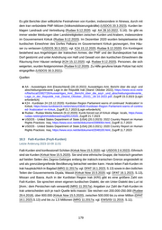 Es gibt Berichte über willkürliche Festnahmen von Kurden, insbesondere in Ninewa, durch mit dem Iran verbündete PMF-Milizen (Volksmobilisierungskräfte) (USDOS 20.3.2023). Kurden be klagen Landraub und Vertreibung (Rudaw 9.12.2020; vgl. AA 28.10.2022, S.16). So gibt es immer wieder Meldungen über Landstreitigkeiten zwischen Kurden und Arabern, insbesondere im Gouvernement Kirkuk (Rudaw 9.12.2020). Im Dezember 2020 wurden beispielsweise die kurdischen Einwohner des Dorfes Palkana im Gouvernement Kirkuk gezwungen, ihre Häu ser zu verlassen (USDOS 30.3.2021; vgl. K24 15.12.2020, Rudaw 9.12.2020). Ein Kontingent bestehend aus Angehörigen der Irakischen Armee, der PMF und der Bundespolizei hat das Dorf gestürmt und unter Androhung von Haft und Gewalt von den kurdischen Einwohnern die Räumung ihrer Häuser verlangt (K24 15.12.2020; vgl. Rudaw 9.12.2020). Personen, die sich weigerten, wurden festgenommen (Rudaw 9.12.2020). Zu Hilfe gerufene lokale Polizei hat nicht eingegriffen (USDOS 30.3.2021). Quellen ■ AA - Auswärtiges Amt [Deutschland] (28.10.2022): Auswärtiges Amt, Bericht über die asyl- und abschiebungsrelevante Lage in der Republik Irak (Stand: Oktober 2022), https://www.ecoi.net/e n/file/local/2082728/Auswärtiges_Amt,_Bericht_über_die_asyl-_und_abschiebungsrelevante_ Lage_in_der_Republik_Irak_(Stand_Oktober_2022),_28.10.2022.pdf , Zugriff 23.3.2023 [Login erforderlich] ■ K24 - Kurdistan 24 (15.12.2020): Kurdistan Region Parliament warns of continued ’Arabization’ in Kirkuk, https://www.kurdistan24.net/en/story/23640-Kurdistan-Region-Parliament-warns-of-continu ed-'Arabization'-in-Kirkuk , Zugriff 21.7.2023 [Login erforderlich] ■ Rudaw - Rudaw Media Network (9.12.2020): Kurds forced out of Kirkuk village: locals, https://www. rudaw.net/english/middleeast/iraq/09122020, Zugriff 21.7.2023 ■ USDOS - United States Department of State [USA] (20.3.2023): 2022 Country Report on Human Rights Practices: Iraq, https://www.ecoi.net/de/dokument/2089064.html, Zugriff 11.7.2023 ■ USDOS - United States Department of State [USA] (30.3.2021): 2020 Country Report on Human Rights Practices: Iraq, https://www.ecoi.net/de/dokument/2048100.html, Zugriff 11.7.2023 18.3 Faili-Kurden (Feyli-Kurden) Letzte Änderung 2023-10-09 11:01 Faili-Kurden sind konfessionell Schiiten (Kirkuk Now 15.5.2020; vgl. USDOS 2.6.2022). Ethnisch sind sie Kurden (Kirkuk Now 15.5.2020). Sie sind eine ethnische Gruppe, die historisch gesehen auf beiden Seiten des Zagros-Gebirges entlang der irakisch-iranischen Grenze angesiedelt ist und als grenzübergreifende Bevölkerung betrachtet werden kann. Heute leben Faili-Kurden im Irak hauptsächlich in Bagdad (MRG 11.2017a; vgl. DFAT 16.1.2023, S.13) sowie in den östlichen Teilen der Gouvernements Diyala, Wassit (Kirkuk Now 15.5.2020; vgl. DFAT 16.1.2023, S.13), Missan und Basra. Auch in der Kurdistan Region Irak (KRI) gibt es eine größere Zahl von Faili-Kurden. Sie sprechen einen eigenen kurdischen Dialekt, der ein Unter-Dialekt des Luri ist [Anm.: dem Persischen nah verwandt] (MRG 11.2017a). Angaben zur Zahl der Faili-Kurden im Irak unterscheiden sich je nach Quelle teils massiv: Sie reichen von 200.000-250.000 (Rudaw 29.4.2018), über 800.000 (Kirkuk Now 15.5.2020), zwischen 500.000 bis zu einer Million (DFAT 16.1.2023,S.13) und bis zu 1,5 Millionen (MRG 11.2017a; vgl. EWS/ISI 11.2019, S.11). 179