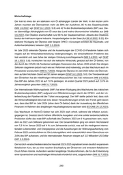 Wirtschaftslage Der Irak ist eines der am stärksten vom Öl abhängigen Länder der Welt. In den letzten zehn Jahren machten die Öleinnahmen mehr als 99% der Ausfuhren, 85 % des Staatshaushalts (WB 1.6.2022; vgl. DFAT 16.1.2023, S.8) und 42 % des Bruttoinlandsprodukts (BIP) aus. Die se übermäßige Abhängigkeit vom Öl setzt das Land makro-ökonomischer Volatilität aus (WB 1.6.2022). Der Ölsektor erwirtschaftet rund 90 % der Staatseinnahmen. Abseits des Ölsektors besitzt der Irak kaum eigene Industrie. Hauptarbeitgeber ist der Staat (AA 28.10.2022, S.22). Ein stärkerer Rückgang der Ölpreise oder längere OPEC+-Kürzungen könnten die Haushalts- und Außenhandelsbilanz belasten (IMF 3.3.2024). Im Jahr 2020 sinkende Ölpreise und die Auswirkungen der COVID-19-Pandemie haben sich negativ auf die Wirtschaftsentwicklung niedergeschlagen, die wirtschaftlichen Probleme des Irak verstärkt und zwei Jahre der stetigen Erholung zunichtegemacht (WB 5.4.2021; vgl. DFAT 16.1.2023, S.8). Inzwischen hat sich die irakische Wirtschaft, gestützt auf den Öl-Sektor, von der durch die COVID-19-Pandemie bedingten Rezession des Jahres 2020 erholt. Die übrigen Sektoren stagnieren jedoch nach wie vor. Reformen sind notwendig, um das Wachstum auch im Privatsektor anzukurbeln (WB 31.7.2023). Steigende Ölpreise im Jahr 2022 ließen die Öleinnah men auf den höchsten Stand seit 50 Jahren steigen (DFAT 16.1.2023, S.8). Die Trendwende auf den Ölmärkten hat die mittelfristigen Wirtschaftsaussichten des Irak verbessert (WB 1.6.2022). Das BIP des Jahres 2022 ist auf 7,0 % gestiegen, im ersten Quartal 2023 jedoch auf 2,6 % im Jahresvergleich gesunken (WB 31.7.2023). Der Internationale Währungsfonds (IWF) hat einen Rückgang des Wachstums des irakischen Bruttoinlandsprodukts (BIP) aufgrund von Ölförderkürzungen durch die OPEC+ und der Un terbrechung der Pipeline mit der Türkei vorausgesagt. Der IWF stellte jedoch fest, dass sich die Wirtschaftstätigkeit des Irak trotz dieser Herausforderungen erholt. Der Fonds geht davon aus, dass das BIP im Jahr 2024 (ohne dem Öl-Sektor) dank der Ausweitung der öffentlichen Finanzen im Rahmen des dreijährigen Haushaltsgesetzes wachsen wird (ECOME 20.12.2023). Das Wachstum im Nicht-Öl-Sektor hat sich 2023 stark erholt, während die Inflation zurück gegangen ist. Gestützt durch höhere öffentliche Ausgaben und eine solide landwirtschaftliche Produktion dürfte das reale BIP außerhalb des Ölsektors 2023 um 6 % gewachsen sein, nach dem es 2022 zum Stillstand gekommen war. Die Gesamtinflation ging von einem Höchststand von 7,5 % im Januar 2023 auf 4 % zum Jahresende zurück, was auf die niedrigeren interna tionalen Lebensmittel- und Energiepreise und die Auswirkungen der Währungsaufwertung vom Februar 2023 zurückzuführen ist. Die Leistungsbilanz wird voraussichtlich einen Überschuss von 2,6% des BIP aufweisen, und die internationalen Reserven stiegen auf 112 Milliarden US-Dollar (IMF 3.3.2024). Der kürzlich verabschiedete irakische Haushalt 2023-2025 signalisiert einen deutlich expansiven fiskalischen Kurs, der zu einer raschen Erschöpfung der Ölreserven und erneutem fiskalischen Druck führen könnte. Außerdem werden langjährige Strukturreformen, die für die Entwicklung einer dynamischen und nachhaltigen Wirtschaft erforderlich sind, aufgeschoben (WB 31.7.2023). 260