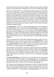 Das Wirtschaftswachstum wird sich den Projektionen zufolge bei einer expansiven Finanzpolitik fortsetzen. Das Gesamtwachstum ist prognostiziert, sich im Jahr 2024 erholen (IMF 3.3.2024). Etwa 18 % der Arbeitskräfte sind in der Landwirtschaft tätig (DFAT 16.1.2023, S.8). Ein wichtiger Faktor für die Landwirtschaft, vor allem im Süden des Irak, sind die Umweltzerstörung und der Klimawandel (Altai 14.6.2021). Die geringe Niederschlagsmenge hat zu weitreichenden Problemen bei der Lebensmittel- und Wassersicherheit geführt. Die Produktion von wichtigen Feldfrüchten wie Weizen und Gerste ging bis 2021 um 70 bis 90 % zurück (DFAT 16.1.2023, S.8). Die abnehmenden Niederschlagsmengen, höheren Temperaturen sowie flussaufwärts gelegene Staudämme in der Türkei und in Iran haben den Wasserfluss im Euphrat- und Tigris-Becken verringert, in dem die Gouvernements Basra, Dhi Qar und Missan liegen. Die Verringerung des Wasserflusses hat Auswirkungen auf den Zugang zu Wasser, der für den Anbau von Pflanzen entscheidend ist (Altai 14.6.2021). Die Arbeitslosigkeit im Irak ist hoch, und die Erwerbsbeteiligung gehört zu den niedrigsten der Welt (DFAT 16.1.2023, S.8). Im Januar 2021 lag die Arbeitslosenquote im Irak kurzfristig um mehr als 10 % über dem Niveau von 12,7 % vor der COVID-19-Pandemie (WB 1.6.2022). Für das Jahr 2021 wird die Arbeitslosenquote auf 16,5 % geschätzt (ILO 5.7.2022; vgl. ILO/CSO/ KRSO 2022, S.11). Dabei ist die Arbeitslosenquote in städtischen Gebieten mit 17,6 % höher als in ländlichen Gebieten mit 13,3 % (ILO 5.7.2022; vgl. ILO/CSO/KRSO 2022, S.12). Die Arbeitslosenquote stieg von 15,3% im Jahr 2022 auf 15,6% im Jahr 2023 (Stand Dezember) (TE 2024). Frauen und junge Menschen sind besonders häufig arbeitslos (DFAT 16.1.2023, S.8). Die Ar beitslosenquote der Frauen ist mit 28,2 % (ILO 5.7.2022; vgl. ILO/CSO/KRSO 2022, S.12) bzw. 29,7 % (DFAT 17.8.2020, S.13) etwa doppelt so hoch wie die der Männer (14,7 %), und die Jugendarbeitslosenquote (35,8 %) ist mehr als dreimal so hoch wie die Arbeitslosenquote der Erwachsenen (11,2 %) (ILO 5.7.2022; vgl. ILO/CSO/KRSO 2022, S.12). Die Arbeitslosigkeit unter Vertriebenen, Rückkehrern, arbeitssuchenden Frauen, Selbstständi gen aus der Zeit vor der Pandemie und informell Beschäftigten ist weiterhin hoch (WB 1.6.2022). Besonders hoch ist die Arbeitslosigkeit bei IDPs, die in Lagern leben. 29 % der betroffenen Haushalte gaben an, dass mindestens ein Mitglied arbeitslos ist und aktiv nach Arbeit sucht. Bei IDPs, die außerhalb von Lagern leben, sind es 22 %, und 18 % bei Rückkehrern (UNOCHA 2.2021, S.28). Die Arbeitsmarktbeteiligung im Irak war mit 48,7 % im Jahr 2019 bereits vor der Ausbreitung des COVID-19-Virus eine der niedrigsten der Welt (IOM 18.6.2021, S.5; vgl. ILO 2021). Der wirtschaftliche Abschwung im Zusammenhang mit der COVID-19-Pandemie hat die Beschäfti gungsmöglichkeiten deutlich reduziert und die Löhne gesenkt (IOM 18.6.2021, S.5). Einer Umfrage von 2021 zufolge liegt die Erwerbsquote der Personen, die auf dem Arbeitsmarkt aktiv sind, also entweder beschäftigt oder arbeitslos [Anm.: und arbeitssuchend], im Jahr 2021 bei 39,5 % (ILO 5.7.2022). Die Erwerbsquote ist in städtischen Gebieten (40,3 %) höher als in ländlichen Gebieten (37,3 %) (ILO 5.7.2022; vgl. ILO/CSO/KRSO 2022, S.12). Etwa 30,2% 261