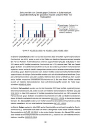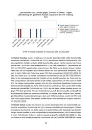 Quelle 19: ACLED 22.9.2023; vgl. ACLED 5.1.2024, ACLED 3.2024 Im Distrikt Chamchamal wurden von Juli bis Dezember 2022 elf Vorfälle registriert (monatlicher Durchschnitt von 1,83), wobei es sich in fünf Fällen um friedliche Demonstrationen handelte. Ein Fall von Raketen-/Artilleriebeschuss wird Iran zugeschrieben (ACLED 22.9.2023). Im Jahr 2023 waren es 21 Vorfälle (monatlicher Durchschnitt von 1,75), darunter zwei Fälle von Gewalt gegen Zivilisten (monatlicher Durchschnitt von 0,17). Es wurden auch sieben Demonstrationen registriert, wovon sechs als friedlich kategorisiert wurden und es bei einer zu exzessiver Gewalt anwendung gegen die Demonstranten kam. Sieben Vorfälle werden den türkischen Streitkräften zugeschrieben, die übrigen Zwischenfälle verteilen sich auf nicht identifizierte bewaffnete Grup pen und Stammesmilizen (ACLED 5.1.2024). Während dem Jänner und Februar 2024 wurden sechs Vorfälle verzeichnet (monatlicher Durchschnitt von 3). Bei zwei dieser Vorfälle handelte es sich um friedliche Demonstrationen. Zwei Luft-/Drohnenangriffe werden der Türkei zuge schrieben (ACLED 3.2024). Im Distrikt Darbandokeh wurden von Juli bis Dezember 2022 zwei Vorfälle registriert (monat licher Durchschnitt von 0,33), wobei es sich um friedliche Demonstrationen handelte (ACLED 22.9.2023). Im Jahr 2023 waren es 32 Vorfälle (monatlicher Durchschnitt von 2,67), darunter ein Fall von Gewalt gegen Zivilisten (monatlicher Durchschnitt von 0,08) und 31 Demonstrationen, davon 30 friedlich verlaufend und eine mit Intervention (ACLED 5.1.2024). In den ersten beiden Monaten des Jahres 2024 wurde nur ein Vorfall verzeichnet (monatlicher Durchschnitt von 0,5). Hierbei handelte es sich um eine friedliche Demonstration (ACLED 3.2024). Im Distrikt Dokan wurden im Jahr 2023 sechs Zwischenfälle verzeichnet (monatlicher Durch schnitt von 0,5). Es handelte sich dabei um einen Luftangriff der Türkei sowie um fünf friedliche Demonstrationen (ACLED 5.1.2024). In den ersten beiden Monaten des Jahres 2024 wurden zwei Vorfälle verzeichnet (monatlicher Durchschnitt von 1), wobei es sich um friedliche Demons trationen handelte (ACLED 3.2024). 68