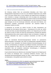 - CIA - Central Intelligence Agency [USA] (12.2.2025): The World Factbook - Egypt, https://www.cia.gov/the-world-factbook/countries/egypt/#military-and-security, Zugriff 19.2.2025 6. Folter und unmenschliche Behandlung Die Verfassung verbietet Folter und unmenschliche Behandlung „einer Person, deren Bewegungsfreiheit eingeschränkt war oder die von den Behörden festgenommen oder verhaftet wurde“. Das Gesetz verbietet Folter, um einen inhaftierten oder festgenommenen Verdächtigen zu einem Geständnis zu bewegen, berücksichtigt jedoch nicht die geistige oder psychologische Misshandlung von Personen oder die Misshandlung aus anderen Gründen als der Erlangung eines Geständnisses. Das Gesetz erlaubte den Gefängnisbeamten zwar die Anwendung von Gewalt gegen Gefangene, die sich den Anordnungen widersetzten, verbot jedoch allen Beamten, unter irgendwelchen Umständen „Grausamkeiten anzuwenden“ oder „körperliche Schäden zu verursachen“ (USDOS 23.4.2024). In Gefängnissen (AI 24.4.2024; vgl. USDOS 23.4.2024, FH 2024), Polizeistationen und Einrichtungen des NSA (National Security Agency – Geheimdienst) (AI 24.4.2024; vgl. USDOS 23.4.2024) sind Folter und andere Misshandlungen weiterhin an der Tagesordnung (AI 24.4.2024; vgl. USDOS 23.4.2024, FH 2024). Die Polizei des Innenministeriums und Beamte der Nationalen Sicherheitsbehörde (NSA) nehmen weiterhin willkürlich Kritiker und Dissidenten in offiziellen und inoffiziellen Haftanstalten fest, lassen sie gewaltsam verschwinden und foltern sie (HRW 16.1.2025). Lokale und internationale Menschenrechtsorganisationen berichten von systematischen Missbrauchspraktiken und behaupten, dass Polizei und Gefängniswärter regelmäßig Gefangene, darunter auch Kinder, misshandeln. Eine führende inländische Menschenrechtsgruppe, die sich auf Folter und Misshandlung von Gefangenen und Häftlingen konzentriert, dokumentierte in den ersten drei Quartalen des Jahres 2023 rund 2.700 Verletzungen der Rechte von Gefangenen, einschließlich Folter und vorsätzlicher medizinischer Vernachlässigung, in Gefängnissen, Polizeistationen und Haftanstalten (USDOS 23.4.2024). Es gibt zahlreiche Berichte über willkürliche oder rechtswidrige Tötungen durch die Regierung oder ihre Vertreter bei Verhaftungen oder in Gewahrsam befindlichen Personen. Lokale und internationale Menschenrechtsgruppen berichten von Fällen, in denen Personen in Gefängnissen und Haftanstalten zu Tode gefoltert wurden (USDOS 23.4.2024). Quellen: - AI - Amnesty International (24.4.2024): Zur weltweiten Lage der Menschenrechte; Ägypten 2023, https://www.ecoi.net/de/dokument/2107876.html, Zugriff 18.2.2025 - FH - Freedom House (2024): Freedom in the World 2024 - Egypt. https://www.ecoi.net/de/dokument/2105018.html, Zugriff 18.2.2025 .BFA Bundesamt für Fremdenwesen und Asyl Seite 11 von 38