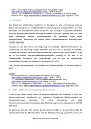 - HRW - Human Rights Watch (16.1.2025): World Report 2025 - Egypt, https://www.ecoi.net/de/dokument/2120073.html, Zugriff 20.2.2025 - USDOS - US Department of State [USA] (23.4.2024): Country Report on Human Rights Practices 2023 - Egypt, https://www.ecoi.net/de/dokument/2107679.html, Zugriff 20.2.2025 7. Korruption Das Gesetz sieht strafrechtliche Sanktionen für Korruption vor, aber die Regierung setzt das Gesetz nicht konsequent um, und Beamte üben manchmal ungestraft korrupte Praktiken aus. Viele Beobachter und Medienberichte weisen darauf hin, dass Korruption im gesamten öffentlichen Sektor ein großes Problem darstellt. Allerdings verurteilten Gerichte im Laufe des Jahres 2023 eine Reihe hochrangiger Beamter, Staatsbediensteter und ehemaliger Richter wegen Amtsmissbrauchs, Bestechung und anderer damit zusammenhängender Anschuldigungen. (USDOS 23.4.2024). Korruption ist auf allen Ebenen der Regierung weit verbreitet. Offizielle Mechanismen zur Untersuchung und Bestrafung korrupter Aktivitäten sind nach wie vor schwach und ineffektiv. Präsident Sisi kontrolliert die Verwaltungskontrollbehörde (Administrative Control Authority – ACA), die für die meisten Korruptionsbekämpfungsinitiativen zuständig ist. Ihr fehlt es an Glaubwürdigkeit, Transparenz und Unparteilichkeit, und sie kann die umfangreichen wirtschaftlichen Aktivitäten des Militärs nicht überwachen (FH 2024). Laut Corruption Perceptions Index 2024 befindet sich Ägypten auf Platz 130 von 180 Ländern (TI 2025). Quellen: - FH - Freedom House (2024): Freedom in the World 2024 - Egypt. https://www.ecoi.net/de/dokument/2105018.html, Zugriff 18.2.2025 - TI - Transparency International (2025): Corruption Perceptions Index 2024, https://www.transparency.org/en/cpi/2024, Zugriff 20.2.2025 - USDOS - US Department of State [USA] (23.4.2024): Country Report on Human Rights Practices 2023 - Egypt, https://www.ecoi.net/de/dokument/2107679.html, Zugriff 20.2.2025 8. NGOs und Menschenrechtsaktivisten, Ombudsmann In den letzten Jahren waren NGOs mit Massenschließungen und Schikanen in Form von Bürodurchsuchungen, Verhaftungen von Mitgliedern, langwierigen Gerichtsverfahren und Reisebeschränkungen konfrontiert (FH 2024). Internationale und lokale Menschenrechtsorganisationen bestätigen, dass die Regierung weiterhin unkooperativ ist (USDOS 23.4.2024). Ein Gesetz aus dem Jahr 2019 schränkt die Aktivitäten von NGOs ein, die als Bedrohung für die nationale Sicherheit, die öffentliche Moral und die öffentliche Ordnung angesehen werden, und .BFA Bundesamt für Fremdenwesen und Asyl Seite 12 von 38