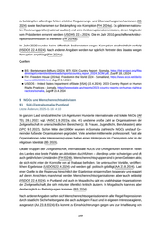 ■ Ali/TEL - The Elephant (Herausgeber), Hodan Ali (Autor) (28.1.2022): Somalia’s Famines, Govern ment Apathy and the Aid Industry, https://www.theelephant.info/features/2022/01/28/somalias-fam ines-government-apathy-and-the-aid-industry/ , Zugriff 24.11.2023 ■ BMLV - Bundesministerium für Landesverteidigung [Österreich] (4.7.2024): Interview der Staaten dokumentation mit einem Länderexperten ■ BS - Bertelsmann Stiftung (2024): BTI 2024 Country Report - Somalia, https://bti-project.org/filea dmin/api/content/en/downloads/reports/country_report_2024_SOM.pdf, Zugriff 18.3.2024 ■ FH - Freedom House (2024b): Freedom in the World 2024 - Somalia, https://freedomhouse.org/cou ntry/somalia/freedom-world/2024, Zugriff 8.7.2024 ■ HRW - Human Rights Watch (11.1.2024): World Report 2024 - Somalia, https://www.ecoi.net/de/do kument/2103135.html, Zugriff 15.1.2024 ■ MBZ - Außenministerium der Niederlande [Niederlande] (6.2023): General country of origin informa tion report on Somalia, https://www.ecoi.net/en/file/local/2103761/General_COI_report_Somalia_Ju ne_2023.pdf, Zugriff 29.4.2024 ■ ÖB Nairobi - Österreichische Botschaft Nairobi [Österreich] (10.2024): Asylländerbericht zu Somalia, https://www.ecoi.net/en/file/local/2116331/SOMA_ÖB-Bericht_2024_10.pdf , Zugriff 22.10.2024 [Login erforderlich] ■ Sahan/SWT - Somali Wire Team (Autor), Sahan (Herausgeber) (12.10.2022): A worrying turn in Somalia’s ‘war on terror’, in: The Somali Wire Issue No. 462, per e-Mail [kostenpflichtig, Login erforderlich] ■ SMN - Shabelle Media Network (20.8.2024): UN calls for protection of aid workers, civilians in Somalia, https://shabellemedia.com/un-calls-for-protection-of-aid-workers-civilians-in-somalia/ , Zugriff 7.10.2024 ■ SPC - Somalia Protection Cluster (9.2.2022): Protection Analysis Update, February 2022, https://re liefweb.int/sites/reliefweb.int/files/resources/SOM_PAU_Somalia-Protection-Analysis_Feb2022.pdf, Zugriff 15.11.2023 ■ SW - Saferworld (11.2023): Adressing gender-based violence against women activists in Somalia: Violence Observatory Systems, https://www.saferworld-global.org/downloads/somalia-violence-obs ervatory-systems.pdf, Zugriff 21.6.2024 ■ TANA/ACRC - Tana Copenhagen (Herausgeber), African Cities Research Consortium (Autor) (9.3.2023): Understanding Systems in Mogadishu City, https://tanacopenhagen.com/wp-content/upl oads/2023/03/ACRC-Tana-Mogadishu-City-System-Analysis.pdf , Zugriff 23.5.2024 ■ UNSC - United Nations Security Council (3.6.2024): Situation in Somalia - Report of the Secretary- General (S/2024/426) [EN/AR/RU/ZH], https://reliefweb.int/attachments/2ee6cff6-d8b3-4bac-bf5 3-5c07f96b1a9f/n2414191.pdf, Zugriff 28.6.2024 ■ UNSC - United Nations Security Council (1.9.2022a): Situation in Somalia - Report of the Secretary- General [S/2022/665], https://www.ecoi.net/en/file/local/2078696/N2257941.pdf, Zugriff 9.10.2023 ■ UNSC - United Nations Security Council (23.1.2015): Report of the Secretary-General on Somalia, https://www.ecoi.net/en/file/local/1235688/1226_1423052016_n1501704somal.pdf, Zugriff 3.6.2024 ■ USDOS - United States Department of State [USA] (22.4.2024): 2023 Country Report on Human Rights Practices - Somalia, https://www.state.gov/reports/2023-country-reports-on-human-rights-p ractices/somalia, Zugriff 23.4.2024 9.2 Somaliland Letzte Änderung 2025-01-16 14:11 Internationale und lokale NGOs können in Somaliland im Allgemeinen meist ohne größere Einschränkungen agieren (USDOS 22.4.2024; vgl. BS 2024; FH 2024a). Organisationen der Zivilgesellschaft nehmen aktiv am politischen Leben teil (BS 2024). Menschenrechtsorganisa tionen werden zwar politisch gebilligt, sind aber in aller Regel gleichwohl Repressionen durch staatliche Sicherheitsorgane ausgesetzt (AA 23.8.2024). Manchmal kommt es zu Drangsalie rungen (FH 2024a; vgl. USDOS 22.4.2024). Insgesamt gibt es nur wenige Interessengruppen oder Organisationen, die völlig unabhängig vom Clansystem oder von der Religion sind (BS 2024). 171