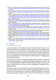 ■ HRCSL - Human Rights Centre (Somaliland) (3.2024): Annual Review of Human Rights Centre 2023, https://hrcsomaliland.org/wp-content/uploads/2024/03/Annual-Report-HRC-2023-web-1.pdf , Zugriff 31.5.2024 ■ ICRC - International Committee of the Red Cross (26.2.2024): Facts & Figures 2023, https://blogs.ic rc.org/somalia/wp-content/uploads/sites/99/2024/02/Facts-and-Figures-2023-Final-EN.pdf , Zugriff 1.7.2024 ■ MUST - Mustaqbal Media (3.2.2024): Somalia’s Judicial Institutions Seek Solutions to Alarming Prison Capacity Crisis, https://mustaqbalmedia.net/en/somalias-judicial-institutions-seek-solutions- to-alarming-prison-capacity-crisis/#:~:text=Somalia’s Judicial Institutions Seek Solutions to Alarming Prison Capacity Crisis,-Newsroom&text=Major General Hassan Ali Noor,the severe shortage of prisons, Zugriff 13.3.2024 ■ ÖB Nairobi - Österreichische Botschaft Nairobi [Österreich] (10.2024): Asylländerbericht zu Somalia, https://www.ecoi.net/en/file/local/2116331/SOMA_ÖB-Bericht_2024_10.pdf , Zugriff 22.10.2024 [Login erforderlich] ■ Odero - Vitalis Okoth Odero (4.2024): Mental Health: A Situational Analysis of Somaliland 2023, https://www.researchgate.net/publication/380792721_MENTAL_HEALTH_A_SITUATIONAL_ANA LYSIS_OF_SOMALILAND_2023, Zugriff 3.7.2024 ■ SW - Saferworld (1.2022): Detainee and detention centre conditions in Mogadishu, Kismayo and Baidoa, https://www.saferworld.org.uk/downloads/pubdocs/somalia-detainees-report-web.pdf , Zugriff 13.3.2024 ■ UN News - United Nations News (4.3.2024): UN crime prevention chief pledges enhanced coopera tion in Somalia, https://news.un.org/en/story/2024/03/1147222, Zugriff 13.3.2024 ■ UNSC - United Nations Security Council (1.9.2022a): Situation in Somalia - Report of the Secretary- General [S/2022/665], https://www.ecoi.net/en/file/local/2078696/N2257941.pdf, Zugriff 9.10.2023 ■ UNSC - United Nations Security Council (8.2.2022): Situation in Somalia - Report of the Secretary- General [S/2022/101], https://www.ecoi.net/en/file/local/2068141/S_2022_101_E.pdf , Zugriff 6.10.2023 ■ USDOS - United States Department of State [USA] (22.4.2024): 2023 Country Report on Human Rights Practices - Somalia, https://www.state.gov/reports/2023-country-reports-on-human-rights-p ractices/somalia, Zugriff 23.4.2024 16 Todesstrafe Letzte Änderung 2025-08-07 08:38 In allen Landesteilen wird die Todesstrafe verhängt und vollzogen, deutlich seltener [Anm.: im Gegensatz zu Gebieten von al Shabaab] in Gebieten unter der Kontrolle der jeweiligen Regie rung – und dort nur für schwerste Verbrechen (AA 23.8.2024). Nach anderen Angaben sieht das Strafgesetzbuch aus dem Jahr 1962, das weiterhin in Somalia und Somaliland angewendet wird, für ca. 20 Verbrechen die Todesstrafe vor, darunter Mord, Hochverrat, Spionage, Offen legung von Staatsgeheimnissen und das Ergreifen von Waffen gegen den Staat (MBZ 6.2023; vgl. Sahan/SWT 21.6.2023). Es kommt auch nach Verfahren, die nicht internationalen Standards genügen, zur Ausführung der Todesstrafe (AA 23.8.2024; vgl. USDOS 22.4.2024; HRW 11.1.2024). Die von Bundes-, aber auch von Regionalbehörden verhängten Todesurteile werden oft innerhalb weniger Tage voll streckt; in manchen Fällen wird Verurteilten eine bis zu dreißigtägige Berufungsfrist eingeräumt (USDOS 22.4.2024). Gesetzlich ist vorgesehen, dass Hinrichtungen unter Ausschluss der Öffentlichkeit durch Erschie ßen vollzogen werden. Dies wird nicht immer respektiert (Sahan/SWT 21.6.2023). Im Jahr 2021 wurden in ganz Somalia mindestens 27 Todesurteile verhängt und mindestens 21 Todesurteile vollstreckt (AI 24.5.2022). Dahingegen waren es 2022 nur sechs Vollstreckungen. Im Jahr 2023 210
