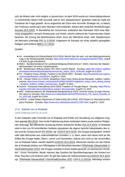 sich als Atheist oder nicht-religiös zu bezeichnen. Im April 2019 wurde ein Universitätsprofessor zu zweieinhalb Jahren Haft verurteilt, weil er sich „ blasphemisch“ geäußert hatte (er hatte auf Facebook die Frage gestellt, ob es angesichts der Dürre eine sinnvolle Strategie sei, zu beten). Der Professor wurde nach zehn Monaten Haft entlassen, bekam aber weiterhin Morddrohungen (HumInt 28.8.2020). In Benadirhat der Gouverneur anlässlich des Ramadan 2024 eine War nung ausgegeben, wonach Restaurants und Hotels, welche während der Fastenstunden Gäste bewirten, der Entzug der Betriebslizenz droht. Auch der öffentliche Khat- oder Tabakkonsum sei demnach untersagt (HO 11.3.2024). Insgesamt ist Somalia von einer staatlich geregelten Religion weit entfernt (BMLV 4.7.2024). Quellen ■ AA - Auswärtiges Amt [Deutschland] (23.8.2024): Bericht über die asyl- und abschiebungsrelevante Lage in der Bundesrepublik Somalia, https://milo.bamf.de/otcs/cs.exe/app/nodes/30275841, Zugriff 4.9.2024 [Login erforderlich] ■ BMLV - Bundesministerium für Landesverteidigung [Österreich] (4.7.2024): Interview der Staaten dokumentation mit einem Länderexperten ■ BS - Bertelsmann Stiftung (2024): BTI 2024 Country Report - Somalia, https://bti-project.org/filea dmin/api/content/en/downloads/reports/country_report_2024_SOM.pdf, Zugriff 18.3.2024 ■ FH - Freedom House (2024b): Freedom in the World 2024 - Somalia, https://freedomhouse.org/cou ntry/somalia/freedom-world/2024, Zugriff 8.7.2024 ■ HO - Hiiraan Online (11.3.2024): Mogadishu mayor bans dining during Ramadan, soldiers, traders warned, https://www.hiiraan.com/news4/2024/Mar/195397/mogadishu_mayor_bans_dining_during _ramadan_soldiers_traders_warned.aspx, Zugriff 7.5.2024 ■ HumInt - Humanists International (28.8.2020): Freedom of Thought Report - Somalia, https://fot.hu manists.international/countries/africa-eastern-africa/somalia, Zugriff 4.11.2024 ■ MBZ - Außenministerium der Niederlande [Niederlande] (6.2023): General country of origin informa tion report on Somalia, https://www.ecoi.net/en/file/local/2103761/General_COI_report_Somalia_Ju ne_2023.pdf, Zugriff 29.4.2024 ■ USDOS - United States Department of State [USA] (30.6.2024): 2023 Report on International Reli gious Freedom - Somalia, https://www.ecoi.net/de/dokument/2111587.html, Zugriff 9.7.2024 17.2 Gebiete von al Shabaab Letzte Änderung 2025-01-16 14:10 In den Gebieten unter Kontrolle von al Shabaab sind Politik und Verwaltung von religiösen Dog men geprägt (BS 2024). Dort ist die Praktizierung eines moderaten Islams sowie anderer Religio nen untersagt. Bei öffentlicher Ausübung drohen drastische Strafen (AA 23.8.2024). Al Shabaab setzt in den von ihr kontrollierten Gebieten gewaltsam die eigene harsche Interpretation des Is lam und der Scharia durch (FH 2024b; vgl. USDOS 30.6.2024). Die Gruppe drangsaliert, verletzt oder tötet Menschen aus unterschiedlichen Gründen, u. a. dann, wenn sich diese nicht an die Edikte der Gruppe halten. Eltern, Lehrer und Gemeinden, welche sich nicht an die Vorschriften von al Shabaab halten, werden bedroht (USDOS 30.6.2024). Menschen werden von der Polizei der al Shabaab (Hisba) zum Pflichtgebet in die Moscheen beordert (TRN/Heide-Ottosen/Abdi Y./ Nor/Khalil/Zeuthen 2022). Die Gruppe verbietet in ihrem Gebiet generell „ un-islamisches Verhal ten“ - Kinos, Fernsehen, Musik, Internet, das Zusehen bei Sportübertragungen, der Verkauf von Khat, Rauchen und weiteres mehr. Es gilt das Gebot der Vollverschleierung (USDOS 30.6.2024; vgl. TRN/Heide-Ottosen/Abdi Y./Nor/Khalil/Zeuthen 2022; CFR 6.12.2022a). Allerdings scheint 214