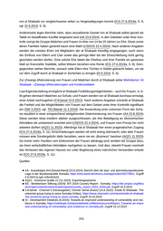 Männer verschwinden auch einfach und bieten Frau und Kindern keinerlei Unterstützung (AQ21 11.2023). Um unterstützt zu werden, zieht die Geschiedene meist mit den Kindern zu ihren Eltern oder zu Verwandten (FIS 5.10.2018, S. 27f). Bei der Auswahl eines neuen Ehepartners sind Geschiedene in der Regel freier als bei der ersten Eheschließung (Landinfo 14.6.2018, S. 19). Annullierung: Eine Ehe kann nur dann annulliert oder angefochten werden, wenn stichhaltige Beweise dafür vorgelegt werden, dass bei einem Ehepartner keine freiwillige Einwilligung vorlag; dass einem Ehepartner die erforderliche Reife (psychisch und physisch) fehlt; wenn nachträglich Beweise dafür auftauchen, dass die Ehefrau bereits verheiratet war und die Scheidung noch nicht vollzogen wurde; wenn der vorgeschriebene Zeitraum zwischen Scheidung und neuer licher Ehe von 3-6 Monaten noch nicht verstrichen war; oder wenn der Ehegatte bereits mit vier Ehefrauen verheiratet ist. Sterilität oder andere physische Einschränkungen stellen keinen Annullierungs-, wohl aber einen Scheidungsgrund dar (Omer2/ALRC 17.3.2023). Ehrenmorde: In Somalia gibt es keine Tradition sogenannter Ehrenmorde im Sinne einer ak zeptierten Tötung von Frauen, welche bestimmte soziale Normen überschritten haben – z. B. Geburt eines unehelichen Kindes (Landinfo 14.6.2018, S. 10). Ein uneheliches Kind wird aller dings als Schande für die ganze Familie der Frau erachtet. Mutter und Kind werden stigmatisiert, im schlimmsten Fall werden sie von der Familie verstoßen (FIS 5.10.2018, S. 27; vgl. Love Does 20.10.2023). Laut einer Quelle ist außer- oder vorehelicher Geschlechtsverkehr eine Straftat (Omer2/ALRC 17.3.2023). Quellen ■ AA - Auswärtiges Amt [Deutschland] (23.8.2024): Bericht über die asyl- und abschiebungsrelevante Lage in der Bundesrepublik Somalia, https://milo.bamf.de/otcs/cs.exe/app/nodes/30275841, Zugriff 4.9.2024 [Login erforderlich] ■ ACCORD - Austrian Centre for Country of Origin and Asylum Research and Documentation (31.5.2021): Somalia - Al-Schabaab und Sicherheitslage; Lage von Binnenvertriebenen und Rück kehrer·innen [sic]; Schutz durch staatliche und nicht-staatliche Akteure; Dokumentation zum COI- Webinar mit Markus Höhne und Jutta Bakonyi am 5. Mai 2021, https://www.ecoi.net/en/file/local/ 2052555/20210531_COI-Webinar Somalia_ACCORD_Mai 2021.pdf, Zugriff 17.5.2022 ■ AQ21 - Anonyme Quelle 21 (11.2023): Expertengespräche ■ FH - Freedom House (2024b): Freedom in the World 2024 - Somalia, https://freedomhouse.org/cou ntry/somalia/freedom-world/2024, Zugriff 8.7.2024 ■ FIS - Finnische Einwanderungsbehörde [Finnland] (5.10.2018): Somalia: Fact-Finding Mission to Mogadishu and Nairobi, January 2018, https://migri.fi/documents/5202425/5914056/Somalia_- Fact_Finding Mission to Mogadishu and Nairobi January 2018.pdf/2abe79e2-baf3-0a23-97d1- f6944b6d21a7/Somalia_Fact_Finding Mission to Mogadishu and Nairobi January 2018.pdf.pdf, Zugriff 12.3.2024 ■ GN - Goobjoog News (28.3.2023a): Divorce highest between ages 25 and 29 in Somalia, https: //goobjoog.com/english/divorce-highest-between-ages-25-and-29-in-somalia/ , Zugriff 17.1.2024 ■ ICG - International Crisis Group (27.6.2019a): Women and Al-Shabaab’s Insurgency, https://www. ecoi.net/en/file/local/2011897/b145-women-and-al-shabaab_0.pdf , Zugriff 12.3.2024 ■ Landinfo - Referat für Länderinformationen der Einwanderungsbehörde [Norwegen] (14.6.2018): Somalia: Marriage and divorce, https://www.ecoi.net/en/file/local/2013990/Report-Somalia-Marriag e-and-divorce-14062018-2.pdf , Zugriff 12.3.2024 ■ LIFOS - LIFOS-Migrationsverket [Schweden] (16.4.2019): Somalia - Kvinnlig könsstympning (version 1.0), https://www.ecoi.net/en/file/local/2007150/190416400.pdf, Zugriff 21.6.2024 248