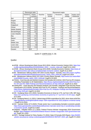 Quelle 27: (UNFPA 2016, S. 29) Quellen ■ AFDB - African Development Bank Group (30.5.2024): African Economic Outlook 2024, https://ww w.afdb.org/sites/default/files/2024/06/06/aeo_2024_-_country_notes.pdf, Zugriff 15.11.2024 ■ AFDB - African Development Bank Group (23.6.2023): Somalia Economic Outlook, https://www.af db.org/en/countries-east-africa-somalia/somalia-economic-outlook , Zugriff 15.12.2023 ■ BS - Bertelsmann Stiftung (2024): BTI 2024 Country Report - Somalia, https://bti-project.org/filea dmin/api/content/en/downloads/reports/country_report_2024_SOM.pdf, Zugriff 18.3.2024 ■ BS - Bertelsmann Stiftung (2022): BTI 2022 Country Report Somalia, https://www.ecoi.net/en/file/l ocal/2069667/country_report_2022_SOM.pdf, Zugriff 6.10.2023 ■ FSNAU - Food Security and Nutrition Analysis Unit Somalia (18.9.2023c): 2023 Post Gu IPC Analysis. A Briefing Presentation to All Stakeholders, https://fsnau.org/downloads/Somalia-2023-Post-Gu-I PC-AFI-and-IPC-AMN-Findings-and-Recommendations-18-Sep-2023.pdf , Zugriff 23.11.2023 ■ FSNAU/IPC - Food Security and Nutrition Analysis Unit Somalia, Integrated Food Security Phase Classification (23.9.2024b): Somalia 2024 Post Gu IPC Analyses - Findings and Recommendations, https://fsnau.org/downloads/Somalia-2024-Post-Gu-IPC-Analyses-Findings-and-Recommendatio ns-23-Sep-2024.pdf , Zugriff 9.10.2024 ■ GN - Goobjoog News (10.3.2024): Somalia’s Economy to Grow by 3.7%, Up From 2.8%, IMF Says, https://en.goobjoog.com/somalias-economy-to-grow-by-3-7-up-from-2-8-imf-says , Zugriff 22.4.2024 ■ GN - Goobjoog News (1.11.2021): Cabinet okays $700m expenditure for 2022, donor share at $470m, https://goobjoog.com/english/cabinet-okays-700m-expenditure-for-2022-projects-a-revenue-slump /, Zugriff 15.11.2024 ■ GO - Garowe Online (27.6.2023): Private sector key in accelerating Somalia’s economic growth, https://www.garoweonline.com/en/featured/business-n/private-sector-key-in-accelerating-somalia -s-economic-growth , Zugriff 22.4.2024 ■ Halqabsi - Halqabsi News (17.1.2024): Federal Finance Minister Inaugurates 2024 Government Budget, https://halqabsi.com/2024/01/federal-finance-minister-inaugurates-2024-government-bud get, Zugriff 19.1.2024 ■ HIPS - Heritage Institute for Policy Studies (7.5.2024): State Of Somalia 2023 Report, https://8v90f1 .p3cdn1.secureserver.net/wp-content/uploads/2024/05/SOS-REPORT-2023-.pdf , Zugriff 27.5.2024 312