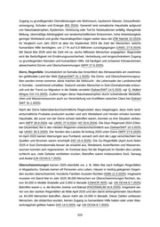 ■ UNFPA - United Nations Population Fund (2016): Economic Characteristics of the Somali People, https://nbs.gov.so/wp-content/uploads/2023/07/Economic-Characteristics-of-the-Somali-Peopl e-–-Volume-4.pdf , Zugriff 15.11.2024 ■ UNSC - United Nations Security Council (27.9.2024): Situation in Somalia - Report of the Secretary- General [S/2024/698], https://www.ecoi.net/en/file/local/2116024/n2426310.pdf, Zugriff 14.11.2024 ■ UNSC - United Nations Security Council (3.6.2024): Situation in Somalia - Report of the Secretary- General (S/2024/426) [EN/AR/RU/ZH], https://reliefweb.int/attachments/2ee6cff6-d8b3-4bac-bf5 3-5c07f96b1a9f/n2414191.pdf, Zugriff 28.6.2024 ■ UNSC - United Nations Security Council (2.2.2024): Situation in Somalia - Report of the Secretary- General [S/2023/758], https://www.ecoi.net/en/file/local/2106391/n2401965.pdf, Zugriff 4.6.2024 ■ UNSC - United Nations Security Council (10.10.2022): Letter dated 10 October 2022 from the Chair of the Security Council Committee pursuant to resolution 751 (1992) concerning Somalia addressed to the President of the Security Council: Letter dated 1 September 2022 from the Panel of Experts on Somalia addressed to the Chair of the Security Council Committee pursuant to resolution 751 (1992) concerning Somalia [S/2022/754], https://www.ecoi.net/en/file/local/2081261/N2263844.pdf, Zugriff 11.10.2023 ■ USDOS - United States Department of State [USA] (22.4.2024): 2023 Country Report on Human Rights Practices - Somalia, https://www.state.gov/reports/2023-country-reports-on-human-rights-p ractices/somalia, Zugriff 23.4.2024 ■ VOA/Maruf - Voice of America (Herausgeber), Harun Maruf (Autor) (27.12.2022): Somali President: Civil Servants Mostly ’Ghost Staff’ on Government Payroll, https://www.voanews.com/a/somali-pre sident-civil-servants-mostly-ghost-staff-on-government-payroll/6893482.html , Zugriff 13.3.2024 ■ WB - Weltbank (2024): Data, Unemployment, total (% of total labor force) (modeled ILO estimate) - Somalia, https://data.worldbank.org/indicator/SL.UEM.TOTL.ZS?locations=SO, Zugriff 15.11.2024 22.1.2 Grundversorgung und humanitäre Lage Letzte Änderung 2025-08-07 08:38 Die humanitäre Lage bleibt trist (HRW 16.1.2025; vgl. AI 29.4.2025). Die Grundversorgung der Bevölkerung mit Nahrungsmitteln ist in weiten Landesteilen, insbesondere in ländlichen Gebieten in Süd-/Zentralsomalia, nicht gewährleistet (AA 25.4.2025). Wiederkehrende klimabe dingte Schocks, Unsicherheit und Konflikte, Umweltzerstörung, fehlende Investitionen und eine schlechte Infrastruktur wirken sich negativ auf die Ernährungssicherheit aus (WFP 26.9.2024; vgl.AA 25.4.2025; UNSC 27.9.2024). Es gibt kaum öffentliche Dienste, meist finden sich An gebote wie Wasser- und Stromversorgung sowie Bildung und Gesundheitsdienste bei privaten Dienstleistern. Und auch wenn mit internationaler Unterstützung versucht wird, hier Abhilfe zu schaffen, sind derartige Dienste für viele Menschen nur schwer oder gar nicht zugänglich (BS 2024). Gleichzeitig wurde die humanitäre Hilfe 2025 drastisch reduziert. Dadurch sehen sich Millionen zusätzliche Menschen im Land zunehmender Gefährdung ausgesetzt. Denn die huma nitären Kräfte haben den Hilfsplan redimensionieren müssen: Das Ziel wurde für das Jahr 2025 von 4,6 Millionen erreichten Menschen auf 1,3 Millionen zurückgenommen. Die veranschlagten Kosten wurden von 1,42 Milliarden auf 367 Millionen US-Dollar reduziert (UN OCHA 6.7.2025). Armut: Weite Teile der Bevölkerung in Somalia leiden unter Armut und Ernährungsunsicher heit. Schätzungsweise 54 % der Bevölkerung leben unter der Armutsgrenze (WFP 27.6.2025). Nach Angaben der Afrikanischen Entwicklungsbank ist die Armutsquote hingegen von 54 % im Jahr 2022 auf 67 % im Jahr 2024 angestiegen (AFDB 27.5.2025). Besonders stark und weit verbreitet ist Armut in ländlichen Gebieten und in den Siedlungen von Binnenvertriebenen (ÖB Nairobi 10.2024). Die Armen leben am Existenzminimum und haben keinen angemessenen 314
