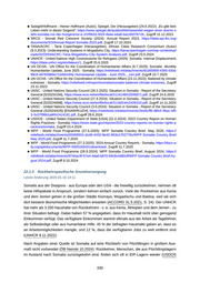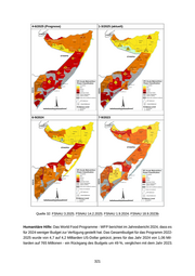 Quelle 32: FSNAU 3.2025; FSNAU 14.2.2025; FSNAU 1.9.2024; FSNAU 18.9.2023b Humanitäre Hilfe: Das World Food Programme - WFP berichtet im Jahresbericht 2024, dass es für 2024 weniger Budget zur Verfügung gestellt hat. Das Gesamtbudget für das Programm 2022- 2025 wurde von 4,7 auf 4,2 Milliarden US-Dollar gekürzt, jenes für das Jahr 2024 von 1,06 Mil liarden auf 765 Millionen - ein Rückgang des Budgets um 49 %, verglichen mit dem Jahr 2023. 321