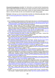 (Elsamahi/Ochieng/Bedelian 9.6.2023). Ein Viehzüchter aus Awdal berichtet beispielsweise, dass er aufgrund des Verlusts von Vieh bei einem lokalen Geschäft auf Kredit eingekauft hat. Als seine Schulden 1.000 US-Dollar erreicht haben, wurden ihm weitere Einkäufe versagt; seitdem leben er und seine Familie von dem, was Verwandte ihnen geben (RE 6.9.2023). Remissen: Zahlungen aus dem Ausland bilden ebenfalls eine Hilfestellung (BS 2024). Siehe dazu Grundversorgung/Wirtschaft / Arbeitsmarkt / Einkommen Quellen ■ AA - Auswärtiges Amt [Deutschland] (25.4.2025): Bericht über die asyl- und abschiebungsrelevante Lage in der Bundesrepublik Somalia (Stand: April 2025), April 202, https://www.ecoi.net/en/file/local/ 2125924/Deutschland. Auswärtiges Amt, Bericht über die asyl- und abschiebungsrelevante Lage in der Bundesrepublik Somalia, Zugriff 5.6.2025 [Login erforderlich] ■ ACCORD - Austrian Centre for Country of Origin and Asylum Research and Documentation (31.5.2021): Somalia - Al-Schabaab und Sicherheitslage; Lage von Binnenvertriebenen und Rück kehrer·innen [sic]; Schutz durch staatliche und nicht-staatliche Akteure; Dokumentation zum COI- Webinar mit Markus Höhne und Jutta Bakonyi am 5. Mai 2021, https://www.ecoi.net/en/file/local/ 2052555/20210531_COI-Webinar Somalia_ACCORD_Mai 2021.pdf, Zugriff 17.5.2022 ■ AFDB - African Development Bank Group (27.5.2025): African Economic Outlook 2025, https://ww w.afdb.org/en/documents/african-economic-outlook-2025 , Zugriff 10.7.2025 ■ AI - Amnesty International (29.4.2025): The State of the World’s Human Rights - Somalia 2024, https://www.ecoi.net/de/dokument/2124628.html, Zugriff 26.6.2025 ■ AQ21 - Anonyme Quelle 21 (11.2023): Expertengespräche ■ BN - Bloomberg News (29.6.2022): Devastating Drought to Push Somalia’s Inflation to Near Double Digits, https://www.bloomberg.com/news/articles/2022-06-29/drought-seen-spurring-somalia-s-inf lation-to-near-double-digits , Zugriff 24.11.2023 ■ BS - Bertelsmann Stiftung (2024): BTI 2024 Country Report - Somalia, https://bti-project.org/filea dmin/api/content/en/downloads/reports/country_report_2024_SOM.pdf, Zugriff 18.3.2024 ■ DI - Development Initiatives (6.2019): Towards an improved understanding of vulnerability and resi lience in Somalia, https://reliefweb.int/sites/reliefweb.int/files/resources/Report_Towards-an-impro ved-understanding-of-vulnerability-and-resilience-in-Somalia.pdf , Zugriff 15.12.2023 ■ DW - Deutsche Welle (3.2021): DW Documentary - Somalia Living with Violence and Terror, online nicht mehr verfügbar; vormals (Stand 27.7.2021) verfügbar auf, https://ne-np.facebook.com/aaferro official/videos/161693795787317/, Zugriff 27.7.2021 ■ DWHH/CWW - Deutsche Welthungerhilfe e.V., Concern Worldwide (9.10.2024): Welthungerindex 2024 - Somalia, https://www.globalhungerindex.org/de/somalia.html, Zugriff 29.11.2024 ■ Elsamahi/Ochieng/Bedelian - M. Elsamahi, G.A. Ochieng, C. Bedelian (9.6.2023): Coping with the drought crisis in Somalia: Formative research findings from the Resilience Population Measurement (RPM) project. Mogadishu, Somalia: Resilience Population Measurement (RPM) Activity, https: //reliefweb.int/attachments/68a8e2c2-c0a4-43d0-a013-05c236a629ba/CopingwithDroughtCrisisS omaliaRPMresearch.pdf, Zugriff 23.11.2023 ■ ENPO - Energy Portal (28.6.2023): Energy Infrastructure Development: A Key Driver of Somalia’s Economic Recovery, https://www.energyportal.eu/news/energy-infrastructure-development-a-key -driver-of-somalias-economic-recovery/47029/ , Zugriff 22.4.2024 ■ FAO/SWALIM - Somali Water and Land Information Management (Autor), Food and Agriculture Organization of the United Nations (Herausgeber) (16.6.2025): Review of Gu 2025, Hagaa Outlook and Implications for Livelihoods and Programming for Somalia, Issued: 16 June 2025 - Somalia, https://reliefweb.int/attachments/20b94b57-7447-43a0-8d73-1e9d422d0ae5/Somalia_Gu_2025_ Rainfall_performance_review_Hagaa_outlook_and_Impacts_on_Livelihoods.pdf, Zugriff 9.7.2025 ■ FSNAU - Food Security and Nutrition Analysis Unit Somalia (25.6.2025): Somalia Early Warning- Early Action: Trends in Risk Factors, Jan 2020 - May 2025 (Indicators in Alarm Phase), https: //fsnau.org/downloads/Early-Warning-Early-Action-Indicators-progression-May-2025.pdf , Zugriff 8.7.2025 ■ FSNAU - Food Security and Nutrition Analysis Unit Somalia (3.2025): Somalia - Estimated Malnu trition Situation - Updated Projection (April-June 2025), https://fsnau.org/downloads/March_2025 326