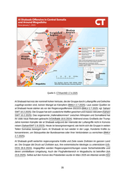 Critical Threats bietet einen Überblick über die spezifisch auf al Shabaab bezogene Situation für Somalia und Kenia (Karte vom Juni 2025): Quelle 2: CT/Tyson/AEI 10.6.2025 EUAA hat Daten von ACLED ausgewertet und berichtet, dass im Zeitraum von zwei Jahren (April 2023-März 2025) in ganz Somalia 5.944 sicherheitsrelevante Zwischenfälle dokumentiert worden sind. Dabei handelte es sich bei 3.759 um Kampfhandlungen, bei 1.479 um Explosionen 28