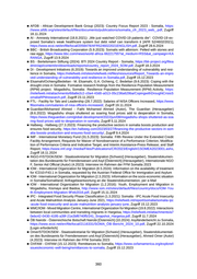 ■ AFDB - African Development Bank Group (2023): Country Focus Report 2023 - Somalia, https: //www.afdb.org/sites/default/files/documents/publications/somalia_cfr_2023_web_.pdf , Zugriff 18.11.2024 ■ AI - Amnesty International (18.8.2021): „ We just watched COVID-19 patients die“: COVID-19 ex posed Somalia’s weak healthcare system but debt relief can transform it [AFR 52/4602/2021], https://www.ecoi.net/en/file/local/2058478/AFR5246022021ENGLISH.pdf, Zugriff 28.6.2024 ■ BBC - British Broadcasting Corporation (5.9.2023): Somalis with albinism: Pelted with stones and raw eggs, https://www.bbc.com/news/world-africa-66221755?at_medium=RSS&at_campaign=KA RANGA, Zugriff 13.9.2024 ■ BS - Bertelsmann Stiftung (2024): BTI 2024 Country Report - Somalia, https://bti-project.org/filea dmin/api/content/en/downloads/reports/country_report_2024_SOM.pdf, Zugriff 18.3.2024 ■ DI - Development Initiatives (6.2019): Towards an improved understanding of vulnerability and resi lience in Somalia, https://reliefweb.int/sites/reliefweb.int/files/resources/Report_Towards-an-impro ved-understanding-of-vulnerability-and-resilience-in-Somalia.pdf , Zugriff 15.12.2023 ■ Elsamahi/Ochieng/Bedelian - M. Elsamahi, G.A. Ochieng, C. Bedelian (9.6.2023): Coping with the drought crisis in Somalia: Formative research findings from the Resilience Population Measurement (RPM) project. Mogadishu, Somalia: Resilience Population Measurement (RPM) Activity, https: //reliefweb.int/attachments/68a8e2c2-c0a4-43d0-a013-05c236a629ba/CopingwithDroughtCrisisS omaliaRPMresearch.pdf, Zugriff 23.11.2023 ■ FTL - Facility for Talo and Leadership (28.7.2022): Salaries of NISA Officers Increased, https://www. ftlsomalia.com/salaries-of-nisa-officers-increased/ , Zugriff 19.11.2024 ■ Guardian/Mohamed Ahmed - Fathi Mohamed Ahmed (Autor), The Guardian (Herausgeber) (8.6.2022): Mogadishu shops shuttered as soaring food prices add to desperation in Somalia, https://www.theguardian.com/global-development/2022/jun/08/mogadishu-shops-shuttered-as-soa ring-food-prices-add-to-desperation-in-somalia , Zugriff 5.11.2024 ■ Halbeeg - Halbeeg (27.3.2023): Financing the productive sectors in somalia boosts production and ensures food security, https://en.halbeeg.com/2023/03/27/financing-the-productive-sectors-in-som alia-boosts-production-and-ensures-food-security/ , Zugriff 9.4.2024 ■ IMF - International Monetary Fund (31.5.2023): Somalia: Fifth Review Under the Extended Credit Facility Arrangement, Requests for Waiver of Nonobservance of a Performance Criterion, Modifica tion of Performance Criteria and Indicative Target, and Interim Assistance-Press Release; and Staff Report, https://www.imf.org/-/media/Files/Publications/CR/2023/English/1SOMEA2023001.ashx , Zugriff 18.11.2024 ■ INGO-F/STDOK/SEM - Staatssekretariat für Migration [Schweiz] (Herausgeber), Staatendokumen tation des Bundesamts für Fremdenwesen und Asyl [Österreich] (Herausgeber), Internationale NGO F, Senior Aid Official (Autor) (4.2023): Interview im Rahmen der FFM Somalia 2023 ■ IOM - International Organization for Migration (8.5.2024): Information on the availability of treatment for ICD10-F43.1 in Somalia, requested by the Austrian Federal Office for Immigration and Asylum ■ IOM - International Organization for Migration (2.3.2023): Information on the socio-economic situation in Somalia/Somaliland; Anfragebeantwortung an die Staatendokumentation, per e-Mail ■ IOM - International Organization for Migration (1.2.2016): Youth, Employment and Migration in Mogadishu, Kismayo and Baidoa, http://www.iom.int/sites/default/files/country/docs/IOM-You th-Employment-Migration-9Feb2016.pdf , Zugriff 15.11.2024 ■ IPC - Integrated Food Security Phase Classification (1.3.2021): Somalia - IPC Acute Food Insecurity and Acute Malnutrition Analysis January-June 2021, https://reliefweb.int/report/somalia/somalia-ipc -acute-food-insecurity-and-acute-malnutrition-analysis-january-june , Zugriff 15.12.2023 ■ MMC/IOM - Mixed Migration Centre, International Organization for Migration (19.8.2022): Interactions between local communities and transiting migrants in Hargeisa, https://reliefweb.int/attachments/a7 0ebc42-0430-4195-a39f-21e2bf8740f5/241_Snapshot_Hargeisa.pdf , Zugriff 11.7.2024 ■ ÖB Nairobi - Österreichische Botschaft Nairobi [Österreich] (10.2024): Asylländerbericht zu Somalia, https://www.ecoi.net/en/file/local/2116331/SOMA_ÖB-Bericht_2024_10.pdf , Zugriff 22.10.2024 [Login erforderlich] ■ Omer/STDOK/SEM - Staatssekretariat für Migration [Schweiz] (Herausgeber), Staatendokumentati on des Bundesamts für Fremdenwesen und Asyl [Österreich] (Herausgeber), Ahmed Omer (Autor) (4.2023): Interview im Rahmen der FFM Somalia 2023 ■ OXFAM - OXFAM (15.12.2023): Remittances to Somalia, https://www.oxfamamerica.org/explore/i ssues/economic-well-being/remittances-to-somalia , Zugriff 15.12.2023 360