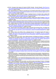 ■ EUAA - European Union Agency for Asylum (5.2025): Somalia – Security Situation, https://euaa.eur opa.eu/sites/default/files/publications/2025-05/2025_05_EUAA_COI_Report_Somalia_Security_Sit uation.pdf, Zugriff 3.6.2025 ■ GO - Garowe Online (17.2.2025): US, and UAE carry out airstrikes against ISIS in Somalia’s Puntland, https://www.garoweonline.com/en/news/somalia/us-and-uae-carry-out-airstrikes-against-isis-in-s omalia-s-puntland, Zugriff 12.6.2025 ■ GO - Garowe Online (15.2.2025): UN Report: Abdulkadir Mumin in Somalia Likely Leading ISIS Global Operations, https://www.garoweonline.com/en/news/somalia/un-report-abdulkadir-mumin-i n-somalia-likely-leading-isis-global-operations , Zugriff 12.6.2025 ■ GO - Garowe Online (28.1.2025): Puntland Crackdown Targets ISIS-Linked Foreigners, https://ww w.garoweonline.com/en/news/puntland/somalia-puntland-crackdown-targets-isis-linked-foreigners , Zugriff 28.1.2025 ■ Halqabsi - Halqabsi News (24.6.2024): Bosaso Hospitals Shut Down Amidst ISIS Extortion Demands, https://halqabsi.com/2024/06/hospitals-shut-down-amidst-isis-extortion-demands , Zugriff 12.6.2025 ■ HO - Hiiraan Online (23.3.2025): Two soldiers killed in Garowe clash between Puntland police and forces linked to PSF, https://www.hiiraan.com/news4/2025/Mar/200818/two_soldiers_killed_in_gar owe_clash_between_puntland_police_and_forces_linked_to_psf.aspx?utm_source=hiiraan&utm _medium=SomaliNewsUpdateFront, Zugriff 12.6.2025 ■ HO - Hiiraan Online (18.6.2024a): Islamic State in Somalia poses growing threat, US officials say, https://www.hiiraan.com/news4/2024/Jun/196751/islamic_state_in_somalia_poses_growing_thr eat_us_officials_say.aspx?utm_source=hiiraan&utm_medium=SomaliNewsUpdateFront , Zugriff 27.6.2024 ■ HO - Hiiraan Online (18.6.2024b): Who is Abdiqadir Mu’min? US airstrike targets ISIS leader in Somalia, https://www.hiiraan.com/news4/2024/Jun/196747/who_is_abdiqadir_mu_min_us_airstrike _targets_isis_leader_in_somalia.aspx?utm_source=hiiraan&utm_medium=SomaliNewsUpdateFro nt, Zugriff 27.6.2024 ■ HO - Hiiraan Online (26.3.2023): Heavy fighting between al-Shabaab and Daesh in northeastern Somalia leaves 40 militants dead, https://www.hiiraan.com/news4/2023/Mar/190509/heavy_fighting _between_al_shabaab_and_daesh_in_northeastern_somalia_leaves_40_militants_dead.aspx?ut m_source=hiiraan&utm_medium=SomaliNewsUpdateFront, Zugriff 27.3.2023 ■ INGO-C/STDOK/SEM - Internationale NGO C (Autor), Staatssekretariat für Migration [Schweiz] (Herausgeber), Staatendokumentation des Bundesamts für Fremdenwesen und Asyl [Österreich] (Herausgeber) (4.2023): Interview im Rahmen der FFM Somalia 2023 ■ INGO-F/STDOK/SEM - Staatssekretariat für Migration [Schweiz] (Herausgeber), Staatendokumen tation des Bundesamts für Fremdenwesen und Asyl [Österreich] (Herausgeber), Internationale NGO F, Senior Aid Official (Autor) (4.2023): Interview im Rahmen der FFM Somalia 2023 ■ IPC - Integrated Food Security Phase Classification (13.12.2022): Nearly 8.3 million people across Somalia face Crisis (IPC Phase 3) or worse acute food insecurity outcomes, https://reliefweb.int/atta chments/fc2d405c-ca29-4526-ad96-6618c2756192/Multi-Partner-Technical-Release-on-Updated -IPC-Analysis-for-Somalia-fo-October-2022-to-June-2023-Final-(English)-13-Dec-2022.pdf , Zugriff 10.10.2023 ■ MAEZA/STDOK/SEM - Staatssekretariat für Migration [Schweiz] (Herausgeber), Staatendokumen tation des Bundesamts für Fremdenwesen und Asyl [Österreich] (Herausgeber), Mitarbeiter einer Organisation für bilaterale Entwicklungszusammenarbeit (Autor) (4.2023): Interview im Rahmen der FFM Somalia 2023 ■ MBZ - Außenministerium der Niederlande [Niederlande] (6.2023): General country of origin informa tion report on Somalia, https://www.ecoi.net/en/file/local/2103761/General_COI_report_Somalia_Ju ne_2023.pdf, Zugriff 29.4.2024 ■ PGN - Political Geography Now (19.6.2025): June 2025 Somalia Control Map & Timeline: Al Shabaab Resurgence, ISIS Retreat, Jubaland Defiant (Subscription), https://controlmaps.polgeonow.com/20 25/06/june-2025-somalia-control-map-timeline/ , Zugriff 23.6.2025 [kostenpflichtig] ■ Sahan/SWT - Somali Wire Team (Autor), Sahan (Herausgeber) (11.6.2025): Puntland’s Pivot from Lightning to Thunder, in: The Somali Wire Issue No. 832, per e-Mail [kostenpflichtig] ■ Sahan/SWT - Somali Wire Team (Autor), Sahan (Herausgeber) (5.2.2025): Operation Hilaac Ad vances in Puntland, in: The Somali Wire Issue No. 783, per e-Mail [kostenpflichtig] ■ Sahan/SWT - Somali Wire Team (Autor), Sahan (Herausgeber) (10.1.2025): Inside Operation Hilaac, in: The Somali Wire Issue No. 772, per e-Mail 90