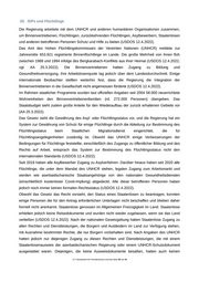 20. IDPs und Flüchtlinge Die Regierung arbeitete mit dem UNHCR und anderen humanitären Organisationen zusammen, um Binnenvertriebenen, Flüchtlingen, zurückkehrenden Flüchtlingen, Asylbewerbern, Staatenlosen und anderen betroffenen Personen Schutz und Hilfe zu bieten (USDOS 12.4.2022). Das Amt des Hohen Flüchtlingskommissars der Vereinten Nationen (UNHCR) meldete zur Jahresmitte 653.921 registrierte Binnenflüchtlinge im Lande. Die große Mehrheit von ihnen floh zwischen 1988 und 1994 infolge des Bergkarabach-Konflikts aus ihrer Heimat (USDOS 12.4.2022; vgl. AA 25.3.2022). Die Binnenvertriebenen hatten Zugang zu Bildung und Gesundheitsversorgung, ihre Arbeitslosenquote lag jedoch über dem Landesdurchschnitt. Einige internationale Beobachter stellten weiterhin fest, dass die Regierung die Integration der Binnenvertriebenen in die Gesellschaft nicht angemessen förderte (USDOS 12.4.2022). Im Rahmen staatlicher Programme wurden laut offiziellen Angaben seit 2004 58.000 neuerrichtete Wohneinheiten den Binnenvertriebenenfamilien (rd. 272.000 Personen) übergeben. Das Staatsbudget sieht zudem große Anteile für den Wiederaufbau der zurück erhaltenen Gebiete vor (AA 25.3.2022). Das Gesetz sieht die Gewährung des Asyl- oder Flüchtlingsstatus vor, und die Regierung hat ein System zur Gewährung von Schutz für einige Flüchtlinge durch die Abteilung zur Bestimmung des Flüchtlingsstatus beim Staatlichen Migrationsdienst eingerichtet, die für Flüchtlingsangelegenheiten zuständig ist. Obwohl das UNHCR einige Verbesserungen der Bedingungen für Flüchtlinge feststellte, einschließlich des Zugangs zu öffentlicher Bildung und des Rechts auf Arbeit, entsprach das System zur Bestimmung des Flüchtlingsstatus nicht den internationalen Standards (USDOS 12.4.2022). Seit 2019 haben alle Asylbewerber Zugang zu Asylverfahren. Darüber hinaus haben seit 2020 alle Flüchtlinge, die unter dem Mandat des UNHCR stehen, legalen Zugang zum Arbeitsmarkt und werden wie aserbaidschanische Staatsangehörige von den nationalen Gesundheitsdiensten (einschließlich kostenloser Covid-Impfung) abgedeckt. Alle diese betroffenen Personen haben jedoch noch immer keinen formalen Rechtsstatus (USDOS 12.4.2022). Obwohl das Gesetz das Recht vorsieht, den Status eines Staatenlosen zu beantragen, konnten einige Personen die für den Antrag erforderlichen Unterlagen nicht beschaffen und blieben daher formell nicht anerkannt. Staatenlose genossen im Allgemeinen Freizügigkeit im Land. Staatenlose erhielten jedoch keine Reisedokumente und wurden nicht wieder zugelassen, wenn sie das Land verließen (USDOS 12.4.2022). Nach der nationalen Gesetzgebung haben Staatenlose Zugang zu allen Rechten und Dienstleistungen, die Bürgern und Ausländern im Land zur Verfügung stehen, mit Ausnahme bestimmter Rechte, die nur Bürgern vorbehalten sind. Nach Angaben des UNHCR hatten jedoch nur diejenigen Zugang zu diesen Rechten und Dienstleistungen, die mit einem Staatenlosenausweis der aserbaidschanischen Regierung oder einem UNHCR-Schutzdokument ausgestattet waren. Diejenigen, die keine Ausweisdokumente besaßen, hatten auch keinen .BFA Bundesamt für Fremdenwesen und Asyl Seite 36 von 41