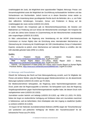 Unabhängigkeit der Justiz, die Möglichkeit einer oppositionellen Tätigkeit, Meinungs- Presse- und Versammlungsfreiheit sowie die Möglichkeit der Durchführung rechtsstaatlicher Verfahren und das Vorhandensein von Rechtsmitteln. Jedoch kommt es in diesen Bereichen immer wieder zu Defiziten in der Anwendung dieser grundlegenden Rechte durch die Behörden, die u. a. von Folter über willkürliche Verhaftungen, Korruption, Zensur und Problemen in Bezug auf die Unabhängigkeit der Justiz reichen (USDOS 20.3.2023). In beiden Häusern des Kongresses gab es Menschenrechtsausschüsse, die Gesetze und Maßnahmen zur Förderung und zum Schutz der Menschenrechte vorschlugen. Der Kongress hat im Laufe des Jahres keine Gesetze im Zusammenhang mit den Menschenrechten verabschiedet oder vorgeschlagen (USDOS 20.3.2023). Im März unterzeichnete die Regierung eine Vereinbarung mit der IACHR (Inter-American Commission on Human Rights) über die Einrichtung eines internationalen Mechanismus zur Überwachung der Umsetzung der Empfehlungen der GIEI (Interdisciplinary Group of Independent Experts), versäumte es jedoch, einen Mechanismus auf nationaler Ebene zu schaffen, den die GIEI ebenfalls gefordert hatte (HRW 12.1.2023). Quellen: - FH – Freedom House (2023): Freedom House (Autor), https://www.ecoi.net/de/dokument/2088492.html, Zugriff 24.5.2023 - HRW – Human Rights Watch (12.1.2023): World Report 2023 – Bolivia, https://www.ecoi.net/de/dokument/2085392.html, Zugriff 24.5.2023 - USDOS – US Department of State [USA] (20.3.2023): 2022 Country Report on Human Rights Practices: Bolivia, https://www.ecoi.net/de/dokument/2089458.html, Zugriff 23.5.2023 12. Meinungs- und Pressefreiheit Obwohl die Verfassung das Recht auf freie Meinungsäußerung vorsieht, auch für Mitglieder der Presse und anderer Medien, ging die Regierung gegen Medienunternehmen vor, die abweichende Meinungen äußerten (USDOS 20.3.2023; vgl. FH 2023). Die Medienunternehmen behaupteten, die Regierung setze Nachrichtenorganisationen unter Druck, positiv über die Regierungspolitik zu berichten. Sie behaupteten auch, dass die Regierung Vergeltungsmaßnahmen gegen Nachrichtenorganisationen ergriffen habe, die diesem Druck nicht nachgekommen seien (USDOS 20.3.2023). Journalisten wurden bedroht und belästigt (USDOS 20.3.2023; vgl. HRW 12.1.2023, FH 2023). Neben der Angst vor strafrechtlicher Verfolgung und Schikanen übten sich Journalisten manchmal in Selbstzensur, weil sie befürchteten, ihren Arbeitsplatz oder den Zugang zu staatlichen Quellen zu verlieren (USDOS 20.3.2023). Im August rief der Nationale Journalistenverband Boliviens (ANPB) wegen der "Einschüchterung" und "juristischen und politischen Verfolgung" der Medien den "Ausnahmezustand" für die bolivianische Presse aus (FH 2023). .BFA Bundesamt für Fremdenwesen und Asyl Seite 12 von 24