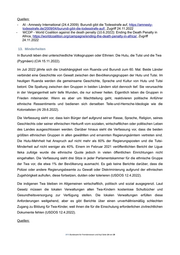 Quellen: - AI - Amnesty International (24.4.2009): Burundi gibt die Todesstrafe auf, https://amnesty- todesstrafe.de/2009/04/burundi-gibt-die-todesstrafe-auf/, Zugriff 24.11.2022 -WCDP - World Coalition against the death penalty (10.6.2022): Ending the Death Penalty in Africa, https://worldcoalition.org/campagne/ending-the-death-penalty-in-africa/, Zugriff 24.11.2022 13. Minderheiten In Burundi leben drei unterschiedliche Volksgruppen oder Ethnien: Die Hutu, die Tutsi und die Twa (Pygmäen) (CIA 15.11.2022). Im Juli 2022 jährte sich die Unabhängigkeit von Ruanda und Burundi zum 60. Mal. Beide Länder verbindet eine Geschichte von Gewalt zwischen den Bevölkerungsgruppen der Hutu und Tutsi. Im heutigen Ruanda werden die gemeinsame Geschichte, Sprache und Kultur von Hutu und Tutsi betont. Die Spaltung zwischen den Gruppen in beiden Ländern sitzt dennoch tief. Sie verursachte in der Vergangenheit sehr tiefe Wunden, die nur schwer heilen. Eigentlich leben die Gruppen in Frieden miteinander. Wenn es aber um Machtteilung geht, reaktivieren politische Anführer ethnische Ressentiments und bedienen sich derselben Teile-und-Herrsche-Ideologie wie die Kolonialisten (AI 29.6.2022). Die Verfassung sieht vor, dass kein Bürger darf aufgrund seiner Rasse, Sprache, Religion, seines Geschlechts oder seiner ethnischen Herkunft vom sozialen, wirtschaftlichen oder politischen Leben des Landes ausgeschlossen werden. Darüber hinaus sieht die Verfassung vor, dass die beiden größten ethnischen Gruppen in allen gewählten und ernannten Regierungsämtern vertreten sind. Die Hutu-Mehrheit hat Anspruch auf nicht mehr als 60% der Regierungsposten und die Tutsi- Minderheit auf nicht weniger als 40%. Einem im Februar 2021 veröffentlichten Bericht der Ligue Iteka zufolge wurde die ethnische Quote jedoch in vielen öffentlichen Einrichtungen nicht eingehalten. Die Verfassung sieht drei Sitze in jeder Parlamentskammer für die ethnische Gruppe der Twa vor, die etwa 1% der Bevölkerung ausmacht. Es gab keine Berichte darüber, dass die Polizei oder andere Regierungsbeamte zu Gewalt oder Diskriminierung aufgrund der ethnischen Zugehörigkeit aufrufen, diese fortsetzen, dulden oder tolerieren (USDOS 12.4.2022). Die indigenen Twa bleiben im Allgemeinen wirtschaftlich, politisch und sozial ausgegrenzt. Laut Gesetz müssen die lokalen Verwaltungen allen Twa-Kindern kostenlose Schulbücher und Gesundheitsversorgung zur Verfügung stellen. Die lokalen Verwaltungen erfüllen diese Anforderungen weitgehend, aber es gibt Berichte über einen unverhältnismäßig schlechten Zugang zu Bildung für Twa-Kinder, weil ihnen die für die Einschulung erforderlichen zivilrechtlichen Dokumente fehlen (USDOS 12.4.2022). Quellen: .BFA Bundesamt für Fremdenwesen und Asyl Seite 14 von 19