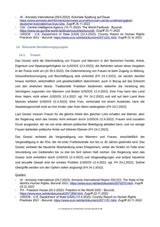 - AI - Amnesty International (29.6.2022): Koloniale Spaltung auf Dauer, https://www.amnesty.de/informieren/amnesty-journal/burundi-ruanda-unabhaengigkeit- deutscher-kolonialismus-hutu-tutsi, Zugriff 24.11.2022 - CIA - Central Intelligence Agency (15.11.2022): The World Factbook - Burundi, https://www.cia.gov/the-world-factbook/countries/burundi/, Zugriff 23.11.2022 -USDOS - U.S. Department of State [USA] (12.4.2022): Country Report on Human Rights Practices 2021 - Burundi, https://www.ecoi.net/de/dokument/2071151.html, Zugriff 22.11.2022 14. Relevante Bevölkerungsgruppen 14.1. Frauen Das Gesetz sieht die Gleichstellung von Frauen und Männern in den Bereichen Familie, Arbeit, Eigentum und Staatsangehörigkeit vor (USDOS 12.4.2022), die Behörden setzen diese Vorgaben in der Praxis nicht um (AI 29.3.2022). Die Diskriminierung von Frauen ist beim Zugang zu Bildung, Gesundheitsversorgung und Beschäftigung weit verbreitet (FH 24.2.2022), sie werden darüber hinaus rechtlich, wirtschaftlich und gesellschaftlich diskriminiert, auch in Bezug auf das Erbrecht und den ehelichen Besitz. Traditionelle Praktiken bestimmen weiterhin die Verteilung des Vermögens zugunsten von Männern und Buben (USDOS 12.4.2022). Eine Frau kann das Land ihres Vaters nicht erben (USDOS 12.4.2022; vgl. FH 24.2.2022) und soll auf dem Land ihres Mannes arbeiten (USDOS 12.4.2022). Eine Frau, verheiratet mit einem Ausländer, kann die Staatsbürgerschaft nicht an ihre Kinder oder ihren Mann weitergeben (FH 24.2.2022). Laut Gesetz müssen Frauen für die gleiche Arbeit den gleichen Lohn erhalten wie Männer, aber die Regierung setzt das Gesetz nicht wirksam durch (USDOS 12.4.2022). Frauen sind sozialem Druck ausgesetzt, der sie von einer aktiven politischen Beteiligung abhalten kann, und nur wenige Frauen bekleiden politische Ämter auf höheren Ebenen (FH 24.2.2022). Das Gesetz verbietet die Vergewaltigung von Männern und Frauen, einschließlich der Vergewaltigung in der Ehe, die mit einer Freiheitsstrafe von bis zu 30 Jahren geahndet wird. Das Gesetz verbietet die häusliche Misshandlung eines Ehepartners, wobei die Strafen im Falle einer Verurteilung von Geldstrafen bis zu drei bis fünf Jahren Haft reichen. Die Regierung setzt das Gesetz nicht einheitlich durch (USDOS 12.4.2022) und Vergewaltigungen und andere häusliche und sexuelle Gewalt sind ein ernstes Problem (USDOS 12.4.2022; vgl. FH 24.2.2022). Solche Übergriffe werden von den Opfern selten angezeigt (FH 24.2.2022). Quellen: -AI - Amnesty International (29.3.2022): Amnesty International Report 2021/22; The State of the World's Human Rights; Burundi 2021, https://www.ecoi.net/de/dokument/2070270.html, Zugriff 23.11.2022 - FH - Freedom House (24.2.2022): Freedom in the World 2022 - Burundi, https://www.ecoi.net/de/dokument/2071858.html, Zugriff 22.11.2022 - USDOS - U.S. Department of State [USA] (12.4.2022): Country Report on Human Rights Practices 2021 - Burundi, https://www.ecoi.net/de/dokument/2071151.html, Zugriff 22.11.2022 .BFA Bundesamt für Fremdenwesen und Asyl Seite 15 von 19