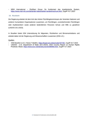 - MSH International – DiotSiaci Group: So funktioniert das brasilianische System, https://www.msh-intl.com/de/lander-liste/brasilien-landerbroschure.html, Zugriff 18.7.2023 19. Rückkehr Die Regierung arbeitet mit dem Amt des Hohen Flüchtlingskommissars der Vereinten Nationen und anderen humanitären Organisationen zusammen, um Flüchtlingen, zurückkehrenden Flüchtlingen oder Asylbewerbern sowie anderen bedenklichen Personen Schutz und Hilfe zu gewähren (USDOS 20.3.2023). In Brasilien bietet IOM Unterstützung für Migranten, Rückkehrer und Binnenvertriebene und arbeitet dabei mit der Regierung und Wissenschaftlern zusammen (IOM o.D.). Quellen: -IOM Brasilien (o.D.): Nosso Trabalho, https://brazil.iom.int/en/node/107162, Zugriff 19.7.2023 - USDOS - U.S. Department of State (20.3.2023): 2022 Country Report on Human Rights Practices: Brazil, https://www.ecoi.net/de/dokument/2089460.html, Zugriff 13.7.2023 .BFA Bundesamt für Fremdenwesen und Asyl Seite 20 von 20
