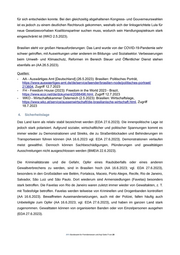 für sich entscheiden konnte. Bei den gleichzeitig abgehaltenen Kongress- und Gouverneurswahlen ist es jedoch zu einem deutlichen Rechtsruck gekommen, weshalb sich der linksgerichtete Lula für neue Gesetzesvorhaben Koalitionspartner suchen muss, wodurch sein Handlungsspielraum stark eingeschränkt ist (WKO 2.5.2023). Brasilien steht vor großen Herausforderungen: Das Land wurde von der COVID-19-Pandemie sehr schwer getroffen, mit Auswirkungen unter anderem im Bildungs- und Sozialsektor. Verbesserungen beim Umwelt- und Klimaschutz, Reformen im Bereich Steuer und Öffentlicher Dienst stehen ebenfalls an (AA 26.5.2023). Quellen: - AA - Auswärtiges Amt [Deutschland] (26.5.2023): Brasilien: Politisches Porträt, https://www.auswaertiges-amt.de/de/service/laender/brasilien-node/politisches-portraet/ 213604, Zugriff 12.7.2023 -FH - Freedom House (2023): Freedom in the World 2023 - Brazil, https://www.ecoi.net/de/dokument/2088496.html, Zugirff 12.7.2023 - WKO - Wirtschaftskammer Österreich (2.5.2023): Brasilien: Wirtschaftslage, https://www.wko.at/service/aussenwirtschaft/die-brasilianische-wirtschaft.html, Zugriff 18.7.2023 4. Sicherheitslage Das Land kann als relativ stabil bezeichnet werden (EDA 27.6.2023). Die innenpolitische Lage ist jedoch stark polarisiert. Aufgrund sozialer, wirtschaftlicher und politischer Spannungen kommt es immer wieder zu Demonstrationen und Streiks, die zu Straßenblockaden und Behinderungen im Transportwesen führen können (AA 16.6.2023 vgl. EDA 27.6.2023). Demonstrationen verlaufen meist gewaltfrei. Dennoch können Sachbeschädigungen, Plünderungen und gewalttätigen Ausschreitungen nicht ausgeschlossen werden (BMEIA 22.6.2023). Die Kriminalitätsrate und die Gefahr, Opfer eines Raubüberfalls oder eines anderen Gewaltverbrechens zu werden, sind in Brasilien hoch (AA 16.6.2023; vgl. EDA 27.6.2023), besonders in den Großstädten wie Belém, Fortaleza, Maceio, Porto Alegre, Recife, Rio de Janeiro, Salvador, São Luiz und São Paulo. Dort wiederum sind Armensiedlungen (Favelas) besonders stark betroffen. Die Favelas von Rio de Janeiro waren zuletzt immer wieder von Gewaltakten, z. T. mit Todesfolge betroffen. Favelas werden teilweise von Kriminellen und Drogenbanden kontrolliert (AA 16.6.2023). Bewaffneten Auseinandersetzungen, auch mit der Polizei, fallen häufig auch Unbeteiligte zum Opfer (AA 16.6.2023; vgl. EDA 27.6.2023), und haben im ganzen Land stark zugenommen. Gewalttaten können von organisierten Banden oder von Einzelpersonen ausgehen (EDA 27.6.2023). .BFA Bundesamt für Fremdenwesen und Asyl Seite 7 von 20