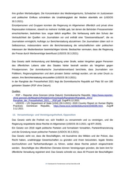 ihre großen Werbebudgets. Die Konzentration des Medieneigentums, Schwächen im Justizwesen und politischer Einfluss schränkten die Unabhängigkeit der Medien ebenfalls ein (USDOS 30.3.2021). Einzelpersonen und Gruppen konnten die Regierung im Allgemeinen öffentlich und privat ohne Repressalien kritisieren, obwohl es mehrere Vorfälle gab, bei denen die Behörden Pressevertreter einschüchterten, bedrohten bzw. sogar tätlich angriffen. Die Verfassung sieht den Schutz der Vertraulichkeit der Quellen von Journalisten vor und enthält eine "Gewissensklausel", die es Journalisten ermöglicht, Aufträge zur Berichterstattung abzulehnen. Die Journalisten übten sich in Selbstzensur, insbesondere wenn die Berichterstattung die wirtschaftlichen oder politischen Interessen der Medienbesitzer beeinträchtigen könnte. Beobachter vermuten, dass die Regierung die Presse durch Werbeverträge beeinflusst (USDOS 30.3.2021). Das Gesetz stellt Verleumdung und Beleidigung unter Strafe, wobei Vergehen gegen Personen des öffentlichen Lebens oder des Staates härter bestraft werden als Vergehen gegen Privatpersonen. Der dominikanische Journalistenverband berichtete, dass Journalisten von Politikern, Regierungsbeamten und dem privaten Sektor verklagt wurden, um sie unter Druck zu setzen, ihre Berichterstattung einzustellen (USDOS 30.3.2021). In der Rangliste der Pressefreiheit 2021 liegt die Dominikanische Republik auf Platz 50 von 180 gelisteten Staaten (RSF ohne Datum). Quellen: - RSF – Reporter ohne Grenzen (ohne Datum): Dominikanische Republik, https://www.reporter- ohne-grenzen.de/fileadmin/Redaktion/Downloads/Ranglisten/Rangliste_2021/ Rangliste_der_Pressefreiheit_2021_-_RSF.pdf, Zugriff 6.12.2021 - USDOS – US Department of State [USA] (30.3.2021): 2020 Country Report on Human Rights Practices: Dominican Republic, https://www.ecoi.net/de/dokument/2048395.html, Zugriff 3.12.2021 13. Versammlungs- und Vereinigungsfreiheit, Opposition Das Gesetz sieht die Freiheit vor, sich friedlich zu versammeln und zu vereinigen, und die Regierung respektierte diese Rechte im Allgemeinen (USDOS 30.3.2021; vgl BTI 2020). Ein Gesetz von 2018 regelt politische Parteien und formalisiert Vorwahlen, Parteienfinanzierung und die Gründung neuer politischer Parteien (USDOS 30.3.2021). Das Gesetz sieht vor, dass die Beschäftigten, mit Ausnahme des Militärs und der Polizei, das Recht haben, unabhängige Gewerkschaften zu gründen und ihnen beizutreten, legale Streiks durchzuführen und Tarifverhandlungen zu führen, wobei diese Rechte jedoch eingeschränkt werden. Beschäftigte des öffentlichen Dienstes können Vereinigungen gründen, die beim Amt für öffentliche Verwaltung registriert sind. Das Gesetz schreibt vor, dass 40 Prozent der Beschäftigten .BFA Bundesamt für Fremdenwesen und Asyl Seite 15 von 25