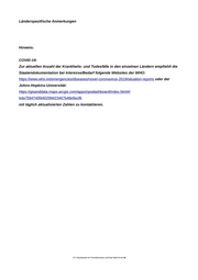 Länderspezifische Anmerkungen Hinweis: COVID-19: Zur aktuellen Anzahl der Krankheits- und Todesfälle in den einzelnen Ländern empfiehlt die Staatendokumentation bei Interesse/Bedarf folgende Websites der WHO: https://www.who.int/emergencies/diseases/novel-coronavirus-2019/situation-reports oder der Johns-Hopkins-Universität: https://gisanddata.maps.arcgis.com/apps/opsdashboard/index.html#/ bda7594740fd40299423467b48e9ecf6 mit täglich aktualisierten Zahlen zu kontaktieren. .BFA Bundesamt für Fremdenwesen und Asyl Seite 3 von 31