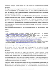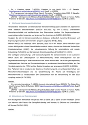 Gemeinden verlangten, was die Medien bis zu 20 Prozent ihrer Einnahmen kostete (USDOS 30.3.2021). Die Regierung hat den Zugang zum Internet nicht eingeschränkt oder unterbrochen oder Online- Inhalte zensiert (USDOS; vgl. FH 3.3.2021), und es gab keine glaubwürdigen Berichte darüber, dass die Regierung private Online-Kommunikation ohne entsprechende rechtliche Befugnisse überwacht hat (USDOS 30.3.2021). Journalisten sind im Zusammenhang mit der Berichterstattung über organisierte Kriminalität oder Korruption Schikanen und Gewalt ausgesetzt. Polizeibeamte und Regierungsvertreter haben in den letzten Jahren versucht, die Berichterstattung der Presse über kontroverse oder heikle Themen zu verhindern (FH 3.3.2021). Der Journalistenverband von El Salvador meldete von Juni 2019 bis Mai 2020 61 Verstöße gegen die Pressefreiheit, darunter Angriffe, digitale Schikanen und Einschränkungen der Arbeit von Journalisten und des Zugangs zu öffentlichen Informationen (HRW 13.1.2021). In der Rangliste der Pressefreiheit 2021 liegt El Salvador auf Platz 82 von 180 Plätzen (RSF ohne Datum). Quellen: - FH – Freedom House (3.3.2021): Freedom in the World 2021 - El Salvador, https://www.ecoi.net/de/dokument/2046511.html, Zugriff 14.12.2021 - HRW – Human Rights Watch (13.1.2021): World Report 2021 - El Salvador, https://www.ecoi.net/de/dokument/2043580.html, Zugriff 14.12.2021 - RSF – Reporter ohne Grenzen (ohne Datum): Rangliste der Pressefreiheit 2021, El Salvador https://www.reporter-ohne-grenzen.de/fileadmin/Redaktion/Downloads/Ranglisten/ Rangliste_2021/Rangliste_der_Pressefreiheit_2021_-_RSF.pdf , Zugriff 14.12.2021 - USDOS – US Department of State [USA] (30.3.2021): 2020 Country Reports on Human Rights Practices: El Salvador, https://www.ecoi.net/de/dokument/2048153.html, Zugriff 10.12.2021 13. Versammlungs- und Vereinigungsfreiheit, Opposition Die Verfassung sieht die Versammlungs- und Vereinigungsfreiheit vor, und die Regierung respektierte diese Rechte im Allgemeinen, außer in Bezug auf die Gewerkschaften (USDOS 30.3.2021). Die Gewerkschaften sehen sich seit langem mit Hindernissen in einem rechtlichen Umfeld konfrontiert, das die Interessen der Wirtschaft begünstigt. Das Gesetz verbietet Streiks in Sektoren, die als wesentlich gelten, und diese Bezeichnung ist nur vage definiert (FH 3.3.2021). Den Salvadorianern steht es frei, sich in verschiedenen politischen Parteien oder Organisationen zu organisieren. Die Versammlungsfreiheit wird im Allgemeinen gewahrt, und öffentliche Proteste und Versammlungen sind erlaubt (FH 3.3.2021). Das Gesetz sieht für die meisten Beschäftigten das Recht vor, unabhängige Gewerkschaften zu gründen und ihnen beizutreten, zu streiken und Tarifverhandlungen zu führen, aber dem Arbeitsministerium wurden Verstöße gemeldet. Das Gesetz verbietet auch gewerkschaftsfeindliche .BFA Bundesamt für Fremdenwesen und Asyl Seite 17 von 27