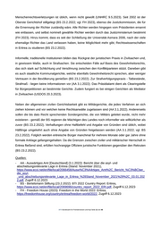 Menschenrechtsverletzungen ist üblich, wenn nicht gewollt (UNHRC 9.5.2023). Seit 2002 ist der Oberste Gerichtshof stillgelegt (BS 23.2.2022; vgl. FH 2023), ebenso die Justizkommission, die für die Ernennung der Richter zuständig wäre. Alle Richter werden hingegen vom Präsidenten ernannt wie entlassen, und selbst nominell gewählte Richter werden durch das Justizministerium bestimmt (FH 2023). Hinzu kommt, dass es seit der Schließung der Universität Asmara 2006, nach der viele ehemalige Richter das Land verlassen haben, keine Möglichkeit mehr gibt, Rechtswissenschaften in Eritrea zu studieren (BS 23.2.2022). Informelle, traditionelle Institutionen bilden das Rückgrat der juristischen Praxis in Zivilsachen und, in gewissem Maße, auch in Strafsachen. Sie entscheiden Fälle auf Basis des Gewohnheitsrechts, das sich stark auf Schlichtung und Versöhnung zwischen den Konfliktparteien stützt. Daneben gibt es auch staatliche Kommunalgerichte, welche ebenfalls Gewohnheitsrecht sprechen, aber weniger Vertrauen in der Bevölkerung genießen (BS 23.2.2022). Zur Strafverfolgungspraxis - Tatbestände, Strafmaß - liegen keine Informationen vor (AA 3.1.2022). Das Präsidialamt dient als Clearingstelle für Bürgerpetitionen an bestimmte Gerichte. Zudem fungiert es bei einigen Gerichten als Mediator in Zivilsachen (USDOS 20.3.2023). Neben der allgemeinen zivilen Gerichtsbarkeit gibt es Militärgerichte, die jedes Verfahren an sich ziehen können und vor welchen keine Rechtsanwälte zugelassen sind (AA 3.1.2022). Andererseits sollen die bis dato Recht sprechenden Sondergerichte, die von Militärs geleitet wurde, nicht mehr existieren - gemäß der BS regieren die Mächtigen des Landes noch informeller wie willkürlicher als zuvor (BS 23.2.2022). Verhaftungen ohne Haftbefehl und Angabe von Gründen sind üblich, wobei Häftlinge umgekehrt auch ohne Angabe von Gründen freigelassen werden (AA 3.1.2022; vgl. BS 23.2.2022). Folglich werden eritreische Bürger manchmal für mehrere Monate oder gar Jahre ohne formale Anklage gefangengehalten. Da die Grenzen zwischen ziviler und militärischer Herrschaft in Eritrea fließend sind, erfüllen hochrangige Offiziere juristische Funktionen gegenüber den Rekruten (BS 23.2.2022). Quellen: - AA - Auswärtiges Amt [Deutschland] (3.1.2022): Bericht über die asyl- und abschiebungsrelevante Lage in Eritrea (Stand: November 2021), https://www.ecoi.net/en/file/local/2066458/Ausw%C3%A4rtiges_Amt%2C_Bericht_%C3%BCber_ die_asyl- _und_abschiebungsrelevante_Lage_in_Eritrea_%28Stand_November_2021%29%2C_03.01.202 2.pdf, Zugriff 6.12.2023 - BS - Bertelsmann Stiftung (23.2.2022): BTI 2022 Country Report: Eritrea, https://www.ecoi.net/en/file/local/2069696/country_report_2022_ERI.pdf, Zugriff 6.12.2023 - FH - Freedom House (2023): Freedom in the World 2022: Eritrea, https://freedomhouse.org/country/eritrea/freedom-world/2022, Zugriff 6.12.2023 .BFA Bundesamt für Fremdenwesen und Asyl Seite 11 von 48