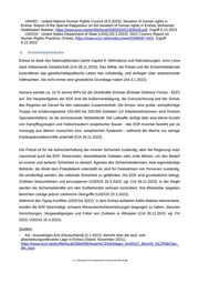 - ADF - Africa Defense Forum (5.9.2023): In Eritrea, China and Russia Seek Red Sea Dominance, https://adf-magazine.com/2023/09/in-eritrea-china-and-russia-seek-red-sea- dominance/, Zugriff 20.12.2023 - BAMF - Bundesamt für Migration und Flüchtlinge [Deutschland] (31.7.2023): Briefings Notes KW 31/2023, https://www.bamf.de/SharedDocs/Anlagen/DE/Behoerde/Informationszentrum/ BriefingNotes/2023/briefingnotes-kw31-2023.pdf?__blob=publicationFile&v=7, Zugriff 20.12.2023 - BMEIA - Bundesministerium für europäische und internationale Angelegenheiten [Österreich] (27.6.2023): Eritrea (Staat Eritrea), https://www.bmeia.gv.at/reise-services/reiseinformation/land/eritrea, Zugriff 20.12.2023 - BS - Bertelsmann Stiftung (23.2.2022): BTI 2022 Country Report: Eritrea, https://www.ecoi.net/en/file/local/2069696/country_report_2022_ERI.pdf, Zugriff 20.12.2023 - C24 - Crisis 24 (22.4.2022): Eritrea Country Report. Security, https://crisis24.garda.com/insights-intelligence/intelligence/country-reports/eritrea? origin=de_riskalert, Zugriff 20.12.2023 - C24 - Crisis 24 (8.4.2022): Eritrea Country Report, https://crisis24.garda.com/insights- intelligence/intelligence/country-reports/eritrea?origin=de_riskalert, Zugriff 20.12.2023 - EDA - Eidgenössisches Departement für auswärtige Angelegenheiten [Schweiz] (29.6.2023): Reisehinweise für Eritrea, https://www.eda.admin.ch/eda/de/home/vertretungen-und- reisehinweise/eritrea/reisehinweise-fuereritrea.html#edaa512fb, Zugriff 20.12.2023 - FCDO - Foreign, Commonwealth and Development Office [Vereinigtes Königreich] (19.12.2023): Foreign travel advice: Eritrea, https://www.gov.uk/foreign-travel-advice/eritrea, Zugriff 20.12.2023 - JF - Jamestown Foundation (6.11.2023): Russia in the Red Sea: Port Options in Eritrea (Part Two), https://jamestown.org/program/russia-in-the-red-sea-port-options-in-eritrea-part-two/, Zugriff 20.12.2023 - TNA - The New Arab (11.12.2023): Red Sea geopolitics: Rising conflict, more competition, https://www.newarab.com/analysis/red-sea-geopolitics-rising-conflict-more-competition, Zugriff 20.12.2023 - WINEP - Washington Institute for Near East Policy (13.4.2022): Eritrea: Supporting Russia to Stay in Power, https://www.washingtoninstitute.org/policy-analysis/eritrea-supporting-russia-stay- power, Zugriff 20.12.2023 4. Rechtsschutz / Justizwesen Die Gewaltenteilung mitsamt der gegenseitigen Kontrolle ist sowohl de jure als auch de facto nicht vorhanden, da Eritrea über keine in Kraft gesetzte Verfassung verfügt. Präsident Afewerki, welcher per Dekret regiert, kontrolliert die Judikative. Folglich unterliegt die Staatsgewalt nicht dem Gesetz (BS 23.2.2022; vgl. UNHRC 9.5.2023), Rechtsstaatlichkeit ist nicht gewährleistet (AA 3.1.2022; vgl. UNHRC 9.5.2023), und die Rechte auf ein faires wie öffentliches Verfahren werden nicht beachtet (USDOS 20.3.2023). Es gibt kein funktionierendes System von Pflichtverteidigern (FH 2023). Der UN-Sonderberichterstatter zur Menschenrechtssituation in Eritrea spricht in puncto Rechtsschutz von einer „andauerenden Menschenrechtskrise“ im Land (UNHRC 9.5.2023). Eritrea besitzt keine institutionelle Mindestinfrastruktur für die Rechtsprechung (UNHRC 9.5.2023). Die formelle Justiz ist schlecht organisiert sowie von der Regierung abhängig, gleichbedeutend mit häufigen Interventionen durch den Präsidenten (BS 23.2.2022; vgl. UNHRC 9.5.2023). Berufungen gegen Urteile sind nicht möglich, es gibt keine Beschränkungen des Strafmaßes (AA 3.1.2022), die Rechte auf ein ordnungsgemäßes Verfahren werden systematisch verletzt, und Straflosigkeit bei .BFA Bundesamt für Fremdenwesen und Asyl Seite 10 von 48