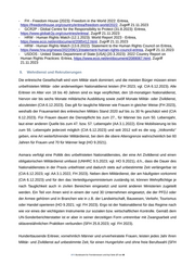 - FH - Freedom House (2023): Freedom in the World 2022: Eritrea, https://freedomhouse.org/country/eritrea/freedom-world/2022, Zugriff 21.11.2023 - GCR2P - Global Centre for the Responsibility to Protect (31.8.2023): Eritrea, https://www.globalr2p.org/countries/eritrea/, Zugriff 21.11.2023 - HRW - Human Rights Watch (12.1.2023): World Report 2023 - Eritrea, https://www.ecoi.net/en/document/2085412.html, Zugriff 21.11.2023 - HRW - Human Rights Watch (13.6.2022): Statement to the Human Rights Council on Eritrea, https://www.hrw.org/news/2022/06/13/statement-human-rights-council-eritrea, Zugriff 21.11.2023 - USDOS - United States Department of State [USA] (20.3.2023): 2022 Country Report on Human Rights Practices: Eritrea, https://www.ecoi.net/en/document/2089067.html, Zugriff 21.11.2023 9. Wehrdienst und Rekrutierungen Die eritreische Gesellschaft wird vom Militär stark dominiert, und die meisten Bürger müssen einen unbefristeten Militär- oder anderweitigen Nationaldienst leisten (FH 2023; vgl. CIA 6.12.2023). Alle Eritreer im Alter von 18 bis 40 Jahren sind ex lege verpflichtet, den 18-monatigen Nationaldienst, hiervon vier bis sechs Monate militärische Ausbildung sowie zwölf Monate Militär- oder Zivildienst, abzuleisten (CIA 6.12.2023). Das gilt für taugliche Männer wie Frauen in gleicher Weise (FH 2023), weshalb der Frauenanteil des eritreischen Militärs Stand 2020 auf bis zu 30 % geschätzt wird (CIA 6.12.2023). Für Frauen dauert die Dienstpflicht bis zum 27., für Männer bis zum 50. Lebensjahr, laut einer anderen Quelle bis zum 47. bzw. 57. Lebensjahr (AA 3.1.2022). Eine Mobilisierung ist bis zum 55. Lebensjahr jederzeit möglich (CIA 6.12.2023) und seit 2012 soll es die sog. „Volksmiliz“ geben, eine Art weiterführender Militärdienst, bei dem die obere Altersgrenze wahrscheinlich bei 60 Jahren für Frauen und 70 für Männer liegt (HO 9.2021). Asmara verfolgt eine Politik des unbefristeten Nationaldienstes, der eine Art Zivildienst und einen obligatorischen Militärdienst umfasst (UNHRC 9.5.2023; vgl. HO 9.2021), d.h., dass die Dauer des Nationaldienstes in der Praxis unbefristet und dadurch stets auf unbestimmte Zeit verlängerbar ist (CIA 6.12.2023; vgl. AA 3.1.2022, FH 2023). Neben dem Militärdienst, der am häufigsten vorkommt (CIA 6.12.2023) und für den das Verteidigungsministerium zuständig ist, können Wehrpflichtige je nach Tauglichkeit auch in zivilen Bereichen eingesetzt und somit anderen Ministerien zugeteilt werden. Ein Teil von ihnen wird in einem der rund 30 Unternehmen eingesetzt, die der PFDJ oder der Armee gehören und in Branchen wie in z.B. der Landwirtschaft, Bauwesen, Verkehr, Tourismus oder Handel operieren (HO 9.2021; vgl. FH 2023). Ergo ist der Nationaldienst für das Regime nach wie vor eines der wichtigsten Instrumente zur sozialen bzw. wirtschaftlichen Kontrolle. Gemäß dem UN-Sonderberichterstatter ist er aber in seiner derzeitigen Form untrennbar mit Zwangsarbeit und sklavereiähnlichen Praktiken verbunden (SFH 25.8.2023; vgl. FH 2023). Hunderttausende Eritreer, vornehmlich Männer und unverheiratete Frauen, leisten jedes Jahr ihren Militär- und Zivildienst auf unbestimmte Zeit, für einen Hungerlohn und ohne freie Berufswahl (SFH .BFA Bundesamt für Fremdenwesen und Asyl Seite 17 von 48