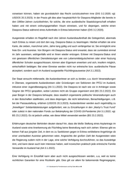 sowohl viele Ärzte als auch qualifiziertes medizinisches Personal in den vergangenen Jahren aus Eritrea geflohen sind (BS 23.2.2022). In Asmara sind lediglich elementare Arzneimittel erhältlich, verschreibungspflichtige Medikamente sind kaum verfügbar (C24 28.9.2023; vgl. AA 6.1.2023), primär wegen fehlender Devisenreserven (AA 3.1.2022) - viele Medikamente werden infolgedessen im Land produziert (FCDO 22.6.2023). Medikamente sowie Verpflegung müssen von den Patienten bzw. ihren Familien beschafft sowie bezahlt werden, wozu sie aber häufig nicht in der Lage sind (AA 3.1.2022). Evakuierungen sind in der Regel bei schweren Verletzungen oder Notfällen erforderlich (C24 28.9.2023). Zurzeit erlaubt die Regierung in schweren Fällen die Ausreise für die gesamte Familie, falls ein Familienmitglied krank ist und medizinische Behandlung benötigt (AA 3.1.2022). Malaria und andere vectorübertragene Krankheiten wie Denguefieber, Filariose, Leishmaniose und Onchozerkose (Flussblindheit) kommen in Eritrea ebenso vor wie Tollwut, Tuberkulose, Hepatitis A bzw. B und Cholera (C24 28.9.2023). Durch staatliche Maßnahmen zur Mückenbekämpfung ist die Zahl der Malariainfektionen jedoch in den letzten Jahren zurückgegangen (AA 6.1.2023), und das Programm zur Malariaprävention läuft weiterhin (BS 23.2.2022). Leitungswasser ist in Eritrea nicht trinkbar (C24 28.9.2023). Die Versorgung mit Trinkwasser ist weiter unzureichend, auch in Asmara (BS 23.2.2022). Bis Ende 2021 gab die Regierung nur einen einzigen Todesfall durch COVID-19 im ganzen Land bekannt, wobei diese Information sehr umstritten ist (BS 23.2.2022). Eritrea ist das einzige Land in Afrika, das keine Angaben zur Verabreichung des COVID-19-Impfstoffs macht, auch, da es keinen Zugang zum globalen Beschaffungsmechanismus COVAX hat (AI 27.3.2023). Quellen: - AA - Auswärtiges Amt [Deutschland] (6.1.2023): Eritrea: Reise- und Sicherheitshinweise (Teilreisewarnung), https://www.auswaertiges-amt.de/de/ReiseUndSicherheit/eritreasicherheit/ 226176#content_5, Zugriff 1.12.2023 - AA - Auswärtiges Amt [Deutschland] (3.1.2022): Bericht über die asyl- und abschiebungsrelevante Lage in Eritrea (Stand: November 2021), https://www.ecoi.net/en/file/local/2066458/Ausw%C3%A4rtiges_Amt%2C_Bericht_%C3%BCber_ die_asyl- _und_abschiebungsrelevante_Lage_in_Eritrea_%28Stand_November_2021%29%2C_03.01.202 2.pdf, Zugriff 1.12.2023 - AI - Amnesty International (27.3.2023): Amnesty International Report 2022/23; The State of the World’s Human Rights; Eritrea 2022, https://www.ecoi.net/en/document/2089488.html, Zugriff 1.12.2023 - AM - ArcheMed (o.D.): Eritrea. Bevölkerung, https://www.archemed.org/eritrea/bevoelkerung, Zugriff 1.12.2023 - BS - Bertelsmann Stiftung (23.2.2022): BTI 2022 Country Report: Eritrea, https://www.ecoi.net/en/file/local/2069696/country_report_2022_ERI.pdf, Zugriff 1.12.2023 .BFA Bundesamt für Fremdenwesen und Asyl Seite 44 von 48