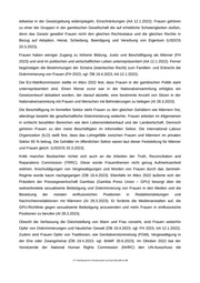 teilweise in der Gesetzgebung widerspiegeln, Einschränkungen (AA 12.1.2022). Frauen gehören zu einer der Gruppen in der gambischen Gesellschaft die auf erhebliche Schwierigkeiten stoßen, denn das Gesetz gewährt Frauen nicht den gleichen Rechtsstatus und die gleichen Rechte in Bezug auf Adoption, Heirat, Scheidung, Beerdigung und Vererbung von Eigentum (USDOS 20.3.2023). Frauen haben weniger Zugang zu höherer Bildung, Justiz und Beschäftigung als Männer (FH 2023) und sind im politischen und wirtschaftlichen Leben unterrepräsentiert (AA 12.1.2022). Ferner begünstigen die Bestimmungen der Scharia (islamisches Recht) zum Familien- und Erbrecht die Diskriminierung von Frauen (FH 2023; vgl. ÖB 19.4.2023, AA 12.1.2022). Die EU-Wahlkommission stellte im März 2022 fest, dass Frauen in der gambischen Politik stark unterrepräsentiert sind. Einen Monat zuvor war in der Nationalversammlung erfolglos ein Gesetzentwurf debattiert worden, der darauf abzielte, eine bestimmte Anzahl von Sitzen in der Nationalversammlung mit Frauen und Menschen mit Behinderungen zu belegen (AI 28.3.2023). Die Beschäftigung im formellen Sektor steht Frauen zu den gleichen Gehältern wie Männern frei, allerdings besteht die gesellschaftliche Diskriminierung weiterhin. Frauen arbeiten im Allgemeinen in schlecht bezahlten Bereichen wie dem Lebensmittelverkauf und der Landwirtschaft. Dennoch gehören Frauen zu den meist Beschäftigten im informellen Sektor. Die International Labour Organization (ILO) stellt fest, dass das Lohngefälle zwischen Frauen und Männern im privaten Sektor 65 % betrug. Die Gehälter im öffentlichen Sektor waren laut dieser Feststellung für Männer und Frauen gleich (USDOS 20.3.2023). Kritik mancher Beobachter richtet sich auch an die Arbeiten der Truth, Reconciliation and Reparations Commission (TRRC). Diese würde Frauenthemen nicht genug Aufmerksamkeit widmen. Anschuldigungen von Vergewaltigungen und Morden von Frauen durch das Jammeh- Regime wurde kaum nachgegangen (ÖB 19.4.2023). Ebenfalls im März 2022 äußerte sich der Präsident der Pressegewerkschaft Gambias (Gambia Press Union – GPU) besorgt über die weitverbreitete sexualisierte Belästigung und Diskriminierung von Frauen in den Medien und die Besetzung der meisten einflussreichen Positionen in Redaktionsleitungen und Nachrichtenredaktionen mit Männern (AI 28.3.2023). Er forderte die Medienanstalten auf, die GPU-Richtlinie gegen sexualisierte Belästigung anzuwenden und mehr Frauen in einflussreiche Positionen zu berufen (AI 28.3.2023). Obwohl die Verfassung die Gleichstellung von Mann und Frau vorsieht, sind Frauen weiterhin Opfer von Diskriminierungen und häuslicher Gewalt (ÖB 19.4.2023; vgl. FH 2023, AA 12.1.2022). Zudem sind Frauen Opfer von Traditionen, wie Genitalverstümmelung (FGM), Vergewaltigung in der Ehe oder Zwangsheirat (ÖB 19.4.2023; vgl. BAMF 30.6.2023). Im Oktober 2022 bat der Vorsitzende der National Human Rights Commission (NHRC) den UN-Ausschuss die .BFA Bundesamt für Fremdenwesen und Asyl Seite 22 von 34