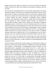 Mädchen machen etwa die Hälfte der Grundschüler aus, aber nur ein Drittel der Gymnasiasten (USDOS 20.3.2023). Das World Food Programme stellt kostenloses Schulessen bereit (AA 19.4.2023). Einem Vertreter des UN-Bevölkerungsfonds in Gambia (UNFPA) zufolge beginnen die Probleme für gambische Mädchen in der Regel, wenn sie ihre Menstruation bekommen. Ab dem Alter von 10 Jahren werden die Mädchen als potenzielle Ehefrauen für ältere Männer angesehen (BAMF 30.6.2023). Laut Gesetz ist eine Heirat ab dem Alter von 18 Jahre möglich. Obwohl die Regierung in mehreren Gebieten des Landes, insbesondere in abgelegenen Dörfern, Kampagnen durchführte, um das Bewusstsein für dieses Gesetz zu schärfen, gab es keine Berichte darüber, dass die Regierung das Gesetz durchsetzte (USDOS 20.3.2023). Das Mindestalter für einvernehmlichen Sex liegt bei 18 Jahren. Mit dem „Children‘s Act“ wurde 2005 eine umfangreiche Gesetzgebung erlassen, die Kinderrechte und deren Durchsetzung regelt (AA 12.1.2022; vgl. USDOS 20.3.2023). Dieser bestraft Zwangsheirat von Kindern unter 18 Jahren mit bis zu zwanzig Jahren Freiheitsentzug. Dennoch wird die Verheiratung von Minderjährigen vor allem im dörflichen Umfeld unter Berufung auf islamische Gesetze praktiziert (ÖB 19.4.2023). Laut Schätzungen der UNICEF wurden über 40 % der Frauen zwischen 20 und 49 Jahren, vor ihrem 18. Lebensjahr verheiratet. Gambia hat sich verpflichtet, Kinder-, Früh- und Zwangsheiraten bis zum Jahr 2030 zu beseitigen, wie es in den ‚Sustainable Development Goals‘ (SDG) vorgesehen ist (ÖB 19.4.2023). Mädchen, die sich keiner FGM unterzogen haben, werden häufig in ihrer lokalen Gemeinschaft sozialem Druck ausgesetzt, sich dieser Praxis zu unterziehen (BAMF 30.6.2023). Die Regierung Barrow hat Schritte unternommen, um gegen Kinderheirat und geschlechtsspezifische Gewalt vorzugehen (FH 2023). Das Gesetz verbietet die kommerzielle sexuelle Ausbeutung, den Verkauf oder die Nutzung von Kindern für die kommerzielle sexuelle Ausbeutung, einschließlich des sexuellen Kinderhandels, sowie Praktiken im Zusammenhang mit Kinderpornografie (USDOS 20.3.2023). Der dem Gesundheitsministerium angegliederte „Social Welfare Service“, der in allen Fragen von Kinderrechten bzw. Kindeswohlverletzungen eingeschaltet werden kann, ist gut organisiert und geht seiner Aufgabe gewissenhaft nach. Dennoch ist Kinderarbeit, vor allem zur Unterstützung im familiären Bereich, weit verbreitet. Problematisch ist zudem die Realität eines in Teilen auf Prostitution, auch von Minderjährigen, gerichteten Tourismus aus westlichen Staaten. Kinder in Gambia sind nach wie vor in hohem Maße von Gewalt betroffen, einschließlich körperlicher Bestrafungen, weiblicher Genitalverstümmelung sowie körperlichem und sexuellem Missbrauch, insbesondere von Mädchen in Schulen, Kommunen und im Tourismus. Jedoch ist die Zahl der sexuell ausgebeuteten Buben im Steigen, größtenteils handelt es sich um Opfer von Sextourismus – und dies, obwohl mehrere Gesetzestexte Kinderprostitution verbieten (ÖB 19.4.2023). .BFA Bundesamt für Fremdenwesen und Asyl Seite 25 von 34