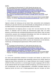 Quellen: - AA - Auswärtiges Amt [Deutschland] (12.1.2022): Bericht über die Asyl- und abschiebungsrelevante Lage in der Republik Gambia (Stand Dezember 2021), https://www.ecoi.net/en/file/local/2066840/Ausw%C3%A4rtiges_Amt%2C_Bericht_ %C3%Bcber_die_asyl-_und_abschiebungsrelevante_Lage_in_der_Republik_Gambia_ %28Stand_Dezember_2021%29%2C_12.01.2022.pdf, Zugriff 10.11.2023 -ÖB - Österreichische Botschaft [Österreich] (19.4.2023): Asylländerbericht Gambia, https://www.ecoi.net/en/file/local/2091415/GAMB_%C3%96B_Bericht_2023_04.pdf, Zugriff 14.11.2023 -USDOS - US Department of State [USA] (20.3.2023): 2022 Country Report on Human Rights Practices: The Gambia, https://www.ecoi.net/de/dokument/2089136.html, Zugriff 13.11.2023 7. Folter und unmenschliche Behandlung Allgemein verbieten die Verfassung und das Gesetz Folter, unmenschliche oder erniedrigende Behandlung. Es gab jedoch Berichte, dass Sicherheitskräfte wie Gefängnisdienste, die Polizei und das Militärs Zivilisten menschenunwürdig behandelten (USDOS 20.03.2023). Seit Amtsübernahme der Regierung Barrow im Januar 2017 sind keine Berichte über Folter bekannt. Im September 2018 hat Gambia das Übereinkommen gegen Folter und andere grausame, unmenschliche oder erniedrigende Behandlung oder Strafe ratifiziert. Folter und andere unmenschliche, grausame oder erniedrigende Behandlungen oder Strafe sind mittlerweile nach geltendem Recht und der Verfassung verboten (AA 12.1.2022). Zu den Ämtern, die mit der Untersuchung von Missständen beauftragt wurden, gehörten die Nationale Menschenrechtskommission (NHRC), das Büro des Ombudsmanns und die Wahrheits-, Versöhnungs- und Wiedergutmachungskommission (TRRC) (USDOS 20.3.2023). Quellen: - AA - Auswärtiges Amt [Deutschland] (12.1.2022): Bericht über die Asyl- und abschiebungsrelevante Lage in der Republik Gambia (Stand Dezember 2021), https://www.ecoi.net/en/file/local/2066840/Ausw%C3%A4rtiges_Amt%2C_Bericht_ %C3%Bcber_die_asyl-_und_abschiebungsrelevante_Lage_in_der_Republik_Gambia_ %28Stand_Dezember_2021%29%2C_12.01.2022.pdf, Zugriff 10.11.2023 - USDOS - US Department of State [USA] (20.3.2023): 2022 Country Report on Human Rights Practices: The Gambia, https://www.ecoi.net/de/dokument/2089136.html, Zugriff 13.11.2023 8. Korruption Das Gesetz sieht strafrechtliche Sanktionen für Korruption durch Beamte vor, jedoch hat die Regierung diesbezügliche Verfehlungen weder glaubwürdig untersucht noch verfolgt. Obwohl die Regierung einige Schritte unternommen hat, um gegen Missbrauch oder Korruption vorzugehen (USDOS 20.3.2023), wurde bisher nur vereinzelt gegen Korruption vorgegangen (ÖB 19.4.2023). Es gibt zahlreiche Berichte über Korruption innerhalb der Regierung, und es herrscht nach wie vor eine Korruptionskultur unter den Regierungsbeamten, einschließlich ehemaliger Beamter der Regierung Jammeh, die immer noch in Regierungspositionen tätig sind. Korruption auf kleiner .BFA Bundesamt für Fremdenwesen und Asyl Seite 11 von 34