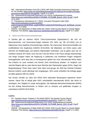 -IMF - International Monetary Fund (26.1.2023): IMF Staff Concludes Governance Diagnostic for The Gambia, https://www.imf.org/en/News/Articles/2023/01/26/pr2318-imf-staff-concludes- governance-diagnostic-for-the-gambia, Zugriff 14.11.2023 -ÖB - Österreichische Botschaft [Österreich] (19.4.2023): Asylländerbericht Gambia, https://www.ecoi.net/en/file/local/2091415/GAMB_%C3%96B_Bericht_2023_04.pdf, Zugriff 14.11.2023 - TI - Transparency International (31.1.2023): Corruption Perception Index 2022, https://www.transparency.org/en/cpi/2022? gclid=EAIaIQobChMI3PWk9d_oggMVIkRBAh1oZgDcEAAYASAAEgLgxvD_BwE&gad_source= 1, Zugriff 13.11.2023 - USDOS - US Department of State [USA] (20.3.2023): 2022 Country Report on Human Rights Practices: The Gambia, https://www.ecoi.net/de/dokument/2089136.html, Zugriff 13.11.2023 9. NGOs und Menschenrechtsaktivisten In Gambia gibt es mehrere NGOs ("Non-Governmental Organizations"), die sich mit Menschenrechts- und Governance-Fragen befassen (FH 2023; vgl. ÖB 19.4.2023) und im Allgemeinen ohne staatliche Einschränkungen arbeiten. Sie untersuchen Menschenrechtsfälle und veröffentlichen ihre Ergebnisse (USDOS 20.03.2023). Die Mitarbeiter von NGOs waren unter Jammeh mit Inhaftierungen und anderen Repressalien konfrontiert, und es gelten nach wie vor restriktive Gesetze (FH 2023). Doch seit 2017 sind die NGOs in der Praxis weniger beeinträchtigt, und einige Gruppen haben die Regierung in politischen und rechtlichen Fragen erfolgreich herausgefordert, ohne dass dies zu Konsequenzen geführt hat. Auch internationale NGOs haben ihre Präsenz im Land verstärkt und können ohne Einmischung arbeiten. Im Vergleich zum Jammeh-Regime gibt es unter Barrow kaum Berichte über Repressalien gegen NGOs. Gegen die Bürgerbewegung “Three Years Jotna” (Drei Jahre sind genug), die 2020 den Rücktritt Präsident Barrows forderte, wurde allerdings hart vorgegangen. 2021 wurde schließlich die Anklage gegen sie fallen gelassen (ÖB 19.4.2023). Das Gesetz schreibt vor, dass sich NGOs beim Nationalen Beratungsrat registrieren lassen müssen. Dieser Rat ist befugt jeder NGO, einschließlich internationaler NGOs, das Recht zu verweigern, ihre Tätigkeit im Lande nachzugehen. Die Nationale Menschenrechtseinheit (NHRU) hat den Auftrag Menschenrechte zu fördern und zu schützen und gefährdete Gruppen zu unterstützen (USDOS 20.03.2023). Quellen: - FH - Freedom House, Freedom in The World (2023): The Gambia Country Report, https://freedomhouse.org/country/gambia/freedom-world/2023, Zugriff 10.11.2023 - ÖB - Österreichische Botschaft [Österreich] (19.4.2023): Asylländerbericht Gambia, https://www.ecoi.net/en/file/local/2091415/GAMB_%C3%96B_Bericht_2023_04.pdf, Zugriff 14.11.2023 - USDOS - US Department of State [USA] (20.3.2023): 2022 Country Report on Human Rights Practices: The Gambia, https://www.ecoi.net/de/dokument/2089136.html, Zugriff 13.11.2023 .BFA Bundesamt für Fremdenwesen und Asyl Seite 13 von 34