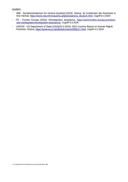 Quellen: - BMI - Bundesministerium für Inneres [Austria] (2024): Ghana, So funktioniert die Rückreise in Ihre Heimat, https://www.returnfromaustria.at/ghana/ghana_deutsch.html, Zugriff 8.3.2024 - FE - Frontex Europa (2024): Reintegration assistance, https://www.frontex.europa.eu/return- and-reintegration/reintegration-assistance/, Zugriff 8.3.2024 - USDOS - US Department of State [USA](20.3.2023): 2022 Country Report on Human Rights Practices: Ghana, https://www.ecoi.net/de/dokument/2089217.html, Zugriff 4.3.2024 .BFA Bundesamt für Fremdenwesen und Asyl Seite 25 von 25
