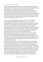 9. Allgemeine Menschenrechtslage Politische Gruppen und Organisationen agieren in der Regel ohne rechtliche Beschränkungen. Allerdings müssen sich neue Gruppen manchmal mit bürokratischen Verzögerungen beim Versuch der Registrierung auseinandersetzen. Wahlen auf nationaler und lokaler Ebene sind wettbewerbsfähig, und neue Parteien gewinnen routinemäßig erhebliche Machtquoten. Die guatemaltekische Politik ist instabil und die Macht wechselt häufig zwischen den Parteien. Die zivilgesellschaftliche Organisation Electoral Watch berichtete, dass während der Wahlperiode 2019 mindestens 10 Kandidaten getötet wurden. Verbale Belästigungen und körperliche Gewalt gegen Wähler sind bei Wahlen an der Tagesordnung und können die politische Beteiligung abschrecken. Auch der direkte Stimmenkauf ist üblich (FH 3.3.2021). Das Gesetz sieht Freiheit der Meinungsäußerung und der Presse vor, und die Regierung respektiert dieses Recht im Allgemeinen. Unabhängige Medien sind aktiv und äußern unterschiedliche Ansichten. Nichtsdestotrotz räumen Reporter, die über organisierte Kriminalität, einschließlich ihrer Verbindungen zu korrupten Beamten berichten, Selbstzensur aufgrund der Gefahr für sie und ihre Familien ein. Pressevertreter berichten von Druck, Drohungen und Vergeltungsmaßnahmen von Amtsträgern und kriminellen Organisationen in Bezug auf den Inhalt ihrer Berichterstattung. Von Januar bis August 2020 wurden 73 Beschwerden über Angriffe oder Drohungen gegen Journalisten, darunter ein Mord, gemeldet, verglichen mit 51 Angriffen im gleichen Zeitraum 2019. Der Zugang zum Internet wird nicht eingeschränkt. Menschenrechtsverteidiger, Journalisten sowie Richter und Anwälte in hochkarätigen Fällen berichten von Angriffen auf soziale Medien, einschließlich des Hackens ihrer privaten Social- Media-Konten, der Veröffentlichung gestohlener oder gefälschter personenbezogener Daten, der Veröffentlichung von fotografischer Überwachung von ihnen und ihren Familienmitgliedern , sowie Online-Diffamierung und Hassrede. Die Regierung hat wenig unternommen, um diese Personen zu schützen (USDOS 30.3.2021). Aufgrund der hohen Unsicherheit im Land treffen viele Guatemalteken Vorsichtsmaßnahmen, wenn sie außerhalb ihres Zuhauses über soziale und politische Themen sprechen. Journalisten und Menschenrechtsverteidiger berichteten im Jahr 2020 über Vorfälle von Belästigung und Überwachung. Diese verstärkte Überwachung hat zusammen mit zunehmender Einschüchterung und Belästigung vermeintlicher Regierungsgegner zu einer stärkeren Selbstzensur unter normalen Bürgern geführt. Regelmäßig kommt es zu körperlichen Angriffen auf Journalisten. Der Verband guatemaltekischer Journalisten registrierte im Jahr 2020 Dutzende von Einschüchterungsaktionen, Drohungen und Übergriffen, und mindestens zwei Journalisten wurden im Laufe des Jahres getötet. Journalisten forderten die Regierung auf, ein 2012 vereinbartes Schutzprogramm umzusetzen, aber es wurden nur geringe Fortschritte erzielt. Auch der Medienbesitz ist stark .BFA Bundesamt für Fremdenwesen und Asyl Seite 13 von 20