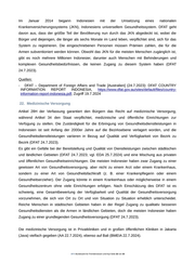 Im Januar 2014 begann Indonesien mit der Umsetzung eines nationalen Krankenversicherungssystems (JKN), Indonesiens universellem Gesundheitssystem. DFAT geht davon aus, dass der größte Teil der Bevölkerung nun durch das JKN abgedeckt ist, wobei die Bürger und diejenigen, die länger als sechs Monate im Land leben, verpflichtet sind, sich für das System zu registrieren. Die eingeschriebenen Personen müssen Prämien zahlen, die für die Armen subventioniert werden können. Obwohl das JKN für die meisten Menschen zugänglich ist, gibt es noch mehrere Millionen Indonesier, darunter auch Menschen mit Behinderungen und komplexen Gesundheitsbedürfnissen, die keinen Zugang zu diesem System haben (DFAT 24.7.2023). Quellen: - DFAT – Department of Foreign Affairs and Trade [Australien] (24.7.2023): DFAT COUNTRY INFORMATION REPORT INDONESIA, https://www.dfat.gov.au/sites/default/files/country- information-report-indonesia.pdf, Zugriff 19.7.2024 22. Medizinische Versorgung Artikel 28H der Verfassung garantiert den Bürgern das Recht auf medizinische Versorgung, während Artikel 34 den Staat verpflichtet, medizinische und öffentliche Einrichtungen zur Verfügung zu stellen. Die Zuständigkeit für die Erbringung von Gesundheitsdienstleistungen in Indonesien ist seit Anfang der 2000er Jahre auf die Bezirksebene verlagert worden, und die Gesundheitsdienstleistungen variieren in Bezug auf Qualität und Verfügbarkeit von Bezirk zu Bezirk (DFAT 24.7.2023). Es gibt ein Gefälle bei der Bereitstellung und Qualität von Dienstleistungen zwischen städtischen und ländlichen Gebieten (DFAT 24.7.2023; vgl. EDA 25.7.2024) und eine Mischung aus privaten und öffentlichen Gesundheitseinrichtungen. Die meisten Indonesier haben zwar Zugang zu einer gewissen Art von Gesundheitsversorgung, aber nicht zu einem Arzt oder einem Krankenhaus, sondern zu einer Art von Gesundheitsfachkraft (z. B. einer Krankenpflegerin oder einem Gesundheitserzieher). Der Zugang könnte in einem Krankenhaus oder möglicherweise in einem Gesundheitszentrum ohne viele Einrichtungen erfolgen. Nach Einschätzung des DFAT ist es schwierig, eine Gesamtbewertung der Verfügbarkeit und Qualität der Gesundheitsversorgung vorzunehmen, die sich von Ort zu Ort und von Situation zu Situation erheblich unterscheidet. Reiche Menschen in städtischen Gebieten haben in der Regel Zugang zu qualitativ besseren Gesundheitsdiensten als die Armen in ländlichen Gebieten, doch die meisten Indonesier haben Zugang zu einer grundlegenden Gesundheitsversorgung (DFAT 24.7.2023). Die medizinische Versorgung ist in Privatkliniken und in großen öffentlichen Kliniken in Jakarta (Java) vielfach gegeben (AA 22.7.2024), ebenso auf Bali (BMEIA 22.7.2024). .BFA Bundesamt für Fremdenwesen und Asyl Seite 32 von 33