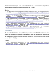 Die medizinische Versorgung durch Ärzte und Krankenhäuser in Indonesien ist im Vergleich zur Weltbevölkerung unterdurchschnittlich (laenderdaten.info 7.2024d). Quellen: - AA – Auswärtiges Amt [Deutschland] (22.7.2024): Indonesien: Reise- und Sicherheitshinweise, Gesundheit, https://www.auswaertiges-amt.de/de/service/laender/indonesien-node/ indonesiensicherheit/212396, Zugriff 22.7.2024 - BMEIA – BM Europäische und internationale Angelegenheiten [Österreich] (22.7.2024): Indonesien, Gesundheit und Impfungen, https://www.bmeia.gv.at/reise-services/reiseinformation/land/indonesien, Zugriff 22.7.2024 - EDA – Eidgenössisches Departement für auswärtige Angelegenheiten [Schweiz] (25.7.2024): Reisehinweise für Indonesien, Medizinische Versorgung, https://www.eda.admin.ch/eda/de/home/vertretungen-und-reisehinweise/indonesien/ reisehinweise-fuerindonesien.html#edad53f4f, Zugriff 25.7.2024 - DFAT – Department of Foreign Affairs and Trade [Australien] (24.7.2023): DFAT COUNTRY INFORMATION REPORT INDONESIA, https://www.dfat.gov.au/sites/default/files/country- information-report-indonesia.pdf, Zugriff 19.7.2024 - laenderdaten.info (7.2024d): Indonesien, Gesundheitswesen in Indonesien, https://www.laenderdaten.info/Asien/Indonesien/gesundheit.php, Zugriff 22.7.2024 23. Rückkehr Es ist unwahrscheinlich, dass ein abgelehnter Asylbewerber von den Behörden festgehalten oder befragt wird, und dem DFAT sind keine Fälle bekannt, in denen dies geschehen ist. Personen, die an separatistischen oder terroristischen Aktivitäten beteiligt sind, können von den Behörden befragt werden (DFAT 24.7.2023). Quellen: - DFAT – Department of Foreign Affairs and Trade [Australien] (24.7.2023): DFAT COUNTRY INFORMATION REPORT INDONESIA, https://www.dfat.gov.au/sites/default/files/country- information-report-indonesia.pdf, Zugriff 19.7.2024 .BFA Bundesamt für Fremdenwesen und Asyl Seite 33 von 33