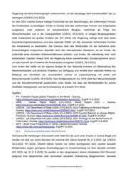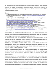 Personen, darunter Frauen und Kinder, bietet. Die zweite Unterkunft, die sich ebenfalls in Conakry befindet, bietet Platz für 24 Frauen, Männer und Kinder. Im ersten Quartal 2023 beherbergten die Heime über 100 Opfer. Drei Heime werden von NGOs betrieben. Staatliche Gesundheitseinrichtungen und Sozialarbeiter stellen medizinische und psychosoziale Dienste bereit (USDOS 15.6.2023). Es gibt keine Gesetze, die die Beteiligung von Frauen am politischen Prozess einschränken, und sie beteiligen sich auch (USDOS 20.3.2023), jedoch schränken geschlechtsspezifische Vorurteile ihre Beteiligung in der Praxis ein (FH 2023). Frauen, die eine wichtige Position in der Regierung, in der Politik oder in der Wirtschaft bekleiden, sind mit großen Hindernissen konfrontiert. Laut den Entwicklungsindikatoren der Weltbank aus dem Jahr 2016 liegt die Alphabetisierungsrate bei 38 % für Männer und 23 % für Frauen. Während Frauen zu 80 % die Grundschule besuchen, sinkt dieses Verhältnis im tertiären Bereich auf 40 %; allerdings besuchen nur weniger als 11,6 % der Guineer eine tertiäre Bildungseinrichtung (BS 23.2.2022). Allerdings stellten auch Beobachter fest, dass die politische Teilhabe von Frauen durch kulturelle Zwänge behindert wird, was sich in der geringen Zahl von Frauen in einflussreichen politischen oder staatlichen Positionen widerspiegelt (USDOS 20.3.2023). Nach einem 2019 verabschiedeten Gesetz müssen Frauen 50 % der Wahllisten stellen. Vor dem Staatsstreich im Jahr 2021 lag der Frauenanteil in der Nationalversammlung bei nur 16,7 %. Die Übergangscharta hat eine 30 % Geschlechterquote für die CNT vorgesehen, die in der Praxis auch umgesetzt wurde (FH 2023). Bei den Präsidentschaftswahlen im Oktober 2020 kandidierten zwei Frauen für das Amt (USDOS 20.3.2023). Im Oktober 2021 ernannte der CNRD Morissanda Kouyate, eine lebenslange Verfechterin der Frauenrechte und der Abschaffung von Genitalverstümmelung, zur Ministerin für auswärtige Angelegenheiten, internationale Zusammenarbeit, afrikanische Integration und Guineer im Ausland (USDOS 20.3.2023). Nach Angaben der Union of Guinean Workers berichteten Frauen, die im öffentlichen Sektor arbeiten, von beruflichen Konsequenzen, Ausgrenzung und Drohungen durch Vorgesetzte, wenn sie Annäherungsversuche nicht akzeptierten (USDOS 20.3.2023). Neben diesen Ungleichheiten im Bildungsbereich liegt der Anteil der Frauen an den Erwerbstätigen nach wie vor bei 54 %. Die Klagen über ethnische, regionale und politische Bevorzugung sowohl im öffentlichen als auch im privaten Sektor haben im Berichtszeitraum zugenommen (BS 23.2.2022). Obwohl das Gesetz gleiches Entgelt für gleiche Arbeit vorschreibt, erhielten Frauen für vergleichbare Arbeit ein geringeres Entgelt, und es gab gesetzliche Beschränkungen für die Beschäftigung von Frauen in einigen Berufen. Obwohl das Gesetz die Diskriminierung aufgrund des Geschlechts bei der Anstellung verbietet, hat setzt die Regierung diese Bestimmung nicht wirksam durch. Es sind keine Beschränkungen der Arbeitszeit von Frauen bekannt, aber es gibt gesetzliche Beschränkungen für .BFA Bundesamt für Fremdenwesen und Asyl Seite 32 von 41