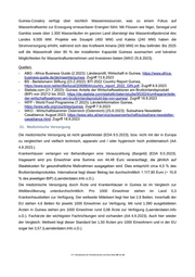 Guinea-Conakry verfügt über reichlich Wasserressourcen, was zu einem Fokus auf Wasserkraftwerke zur Erzeugung erneuerbarer Energien führt. Mit Flüssen wie Niger, Senegal und Gambia sowie über 1.300 Wasserläufen im ganzen Land übersteigt das Wasserkraftpotenzial des Landes 6.000 MW. Projekte wie Souapiti (450 MW) und Kaleta (240 MW) haben die Stromversorgung erhöht, während sich das Kraftwerk Amaria (300 MW) im Bau befindet. Bis 2025 soll die Wasserkraft über 80 % der installierten Kapazität Guineas ausmachen und lukrative Möglichkeiten für Wasserkraftunternehmen und Investoren bieten (WKO 25.8.2023). Quellen: - ABG - Africa Business Guide (2.2023): Länderprofil, Wirtschaft in Guinea, https://www.africa- business-guide.de/de/maerkte/guinea, Zugriff 13.9.2023 - BS - Bertelsmann Stiftung (23.2.2022): BTI 2022 Country Report Guinea, https://www.ecoi.net/en/file/local/2069804/country_report_2022_GIN.pdf, Zugriff 6.9.2023 - Statista.com (21.7.2023): Guinea: Anteile der Wirtschaftssektoren am Bruttoinlandsprodukt (BIP) von 20212 bis 2022, https://de.statista.com/statistik/daten/studie/953024/umfrage/anteile- der-wirtschaftssektoren-am-bruttoinlandsprodukt-bip-von-guinea/, Zugriff 18.9.2023 - WFP - World Food Programme (7.2023): Länderinformation Guinea, h ttps://www.wfp.org/countries/guinea , Zugriff 7.9.2023 -WKO - Wirtschaftskammer Österreich (Österreich) (25.8.2023): Subsahara Newsletter Casablanca: August 2023, https://www.wko.at/service/aussenwirtschaft/subsahara-newsletter- casablanca.html, Zugriff 18.9.2023 21. Medizinische Versorgung Die medizinische Versorgung ist nicht gewährleistet (EDA 9.5.2023), bzw. nicht mit der in Europa zu vergleichen und vielfach technisch, apparativ und / oder hygienisch hoch problematisch (AA 4.9.2023.). Krankenhäuser verlangen vor Behandlungen eine Vorauszahlung (Bargeld) (EDA 9.5.2023). Insgesamt wird pro Einwohner eine Summe von 44,48 Euro veranschlagt, die jährlich auf Staatskosten für gesundheitliche Maßnahmen ausgegeben wird. Dies entspricht circa 4,0 % des Bruttoinlandsproduktes. International liegt dieser Betrag bei durchschnittlich 1.117,90 Euro (~ 10,9 % des jeweiligen BIP) (Laenderdaten.Info o.D.). Die medizinische Versorgung durch Ärzte und Krankenhäuser in Guinea ist im Vergleich zur Weltbevölkerung unterdurchschnittlich. Pro 1000 Einwohner stehen im Land 0,3 Krankenhausbetten zur Verfügung. Der weltweite Mittelwert liegt hier bei 2,9 Betten. Innerhalb der EU stehen 4,6 Betten für jeweils 1000 Einwohner zur Verfügung. Mit rund 1.090 ausgebildeten Ärzten in Guinea stehen pro 1000 Einwohner rund 0,08 Ärzte zur Verfügung (Laenderdaten.Info o.D.). Fachärzte der wichtigsten Fachrichtungen sind vorhanden (AA 4.9.2023). Auch hier wieder der Vergleich: Weltweit liegt dieser Standard bei 1,50 Ärzten pro 1000 Einwohnern und in der EU sogar bei 3,57 (Laenderdaten.Info o.D.). .BFA Bundesamt für Fremdenwesen und Asyl Seite 39 von 41